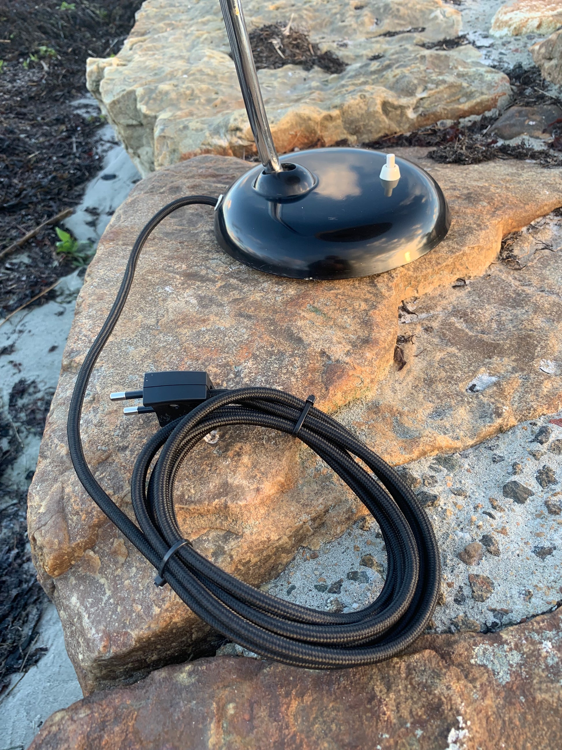 Dette eksemplar fremstår med den originale lakering og nye kabler. Lampen har lidt aldersrelaterede brugsspor, som sådan en lampe (efter vores smag) nærmest bør have.