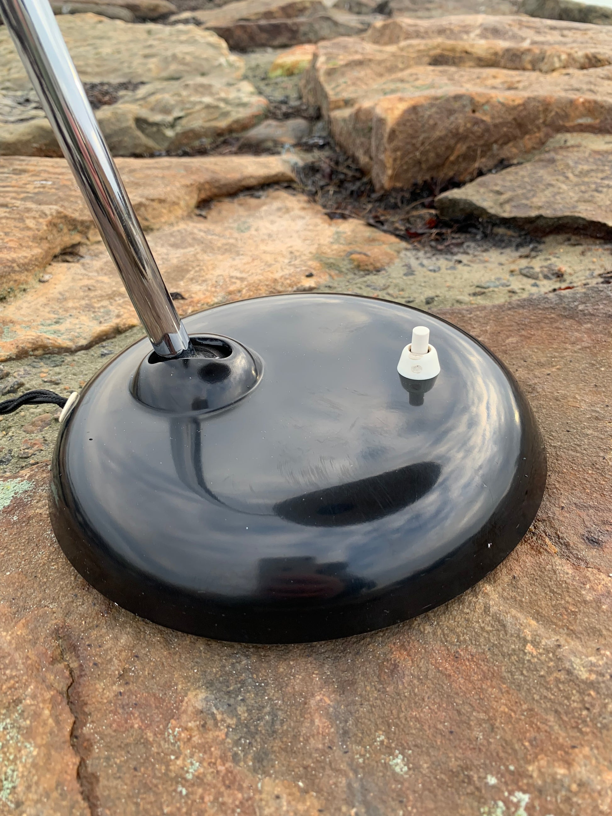 Dette eksemplar fremstår i den originale lakering og med nye kabler. Lampen har lidt aldersrelaterede brugsspor, som sådan en lampe (efter vores smag) nærmest bør have, men overordnet er den i en meget flot vintagestand.