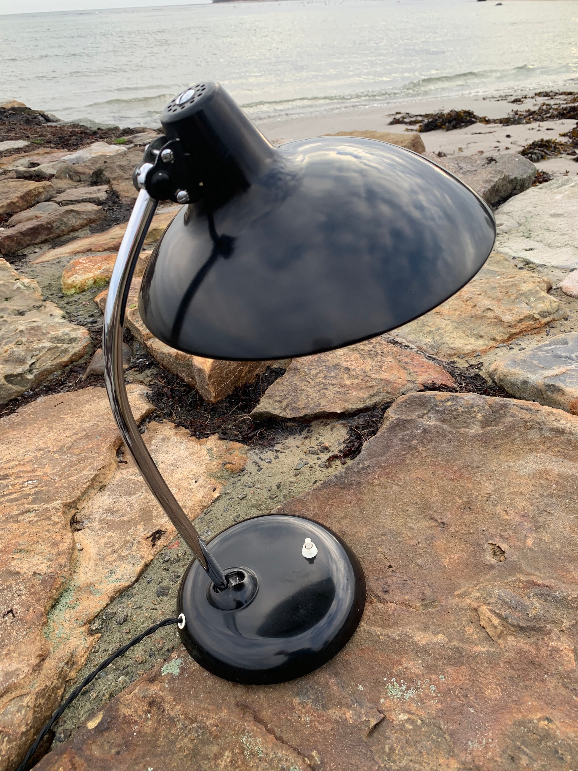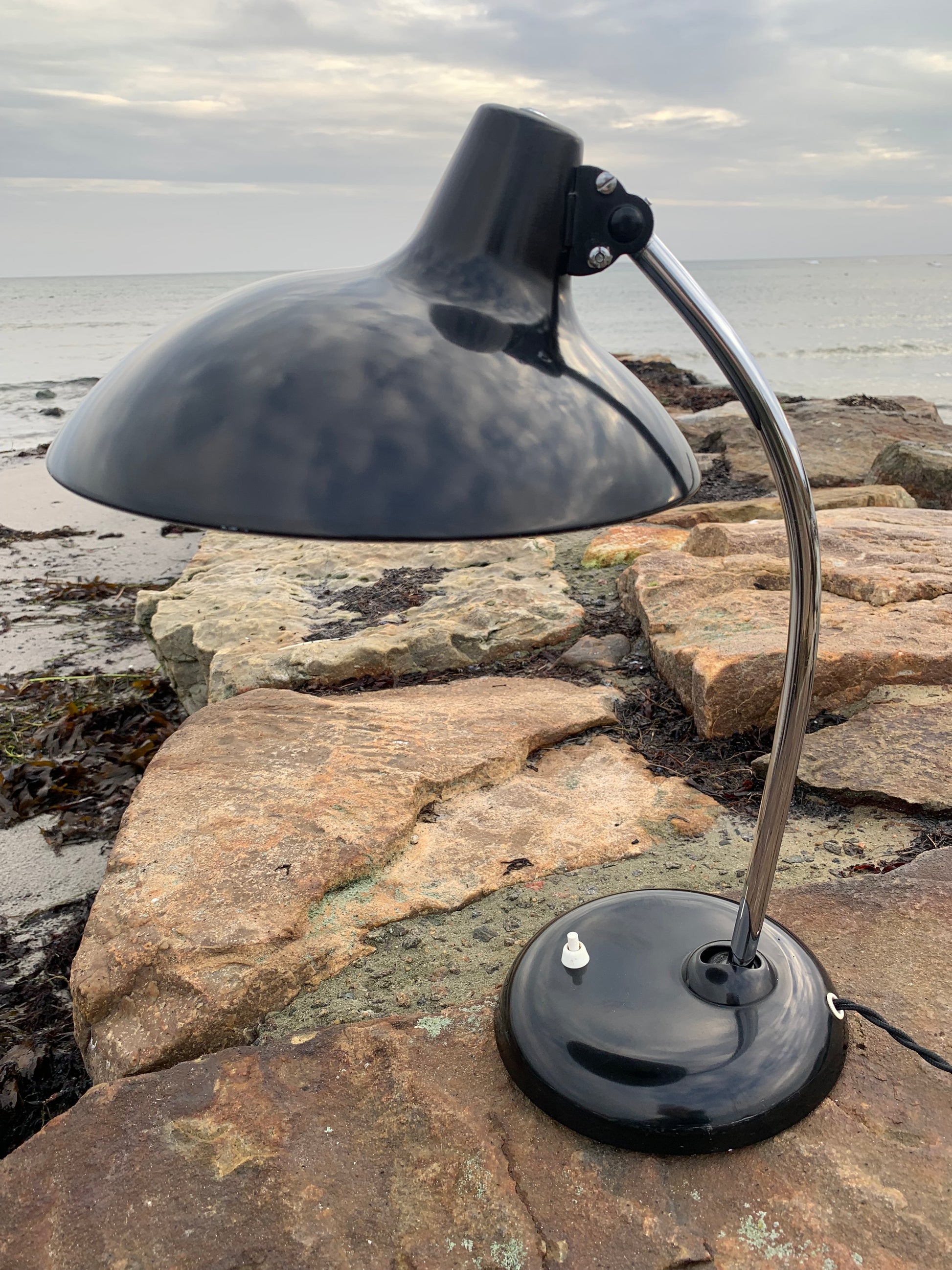 Skøn Kaiser Idell lampe designet af Christian Dell. Denne smukke lampe henvender sig til dig, der ser det smukke i et godt og tidsløst design. De fine gamle Kaiser Idell lamper er et vidnesbyrd om god kvalitet samt godt håndværk. Disse skønne gamle vintagelamper har ofte lidt aldersrelaterede brugsspor, der både forstærker ægtheden og originaliteten. Disse spor både vidner om samt fortæller historien om lampens rejse igennem mange årtier.