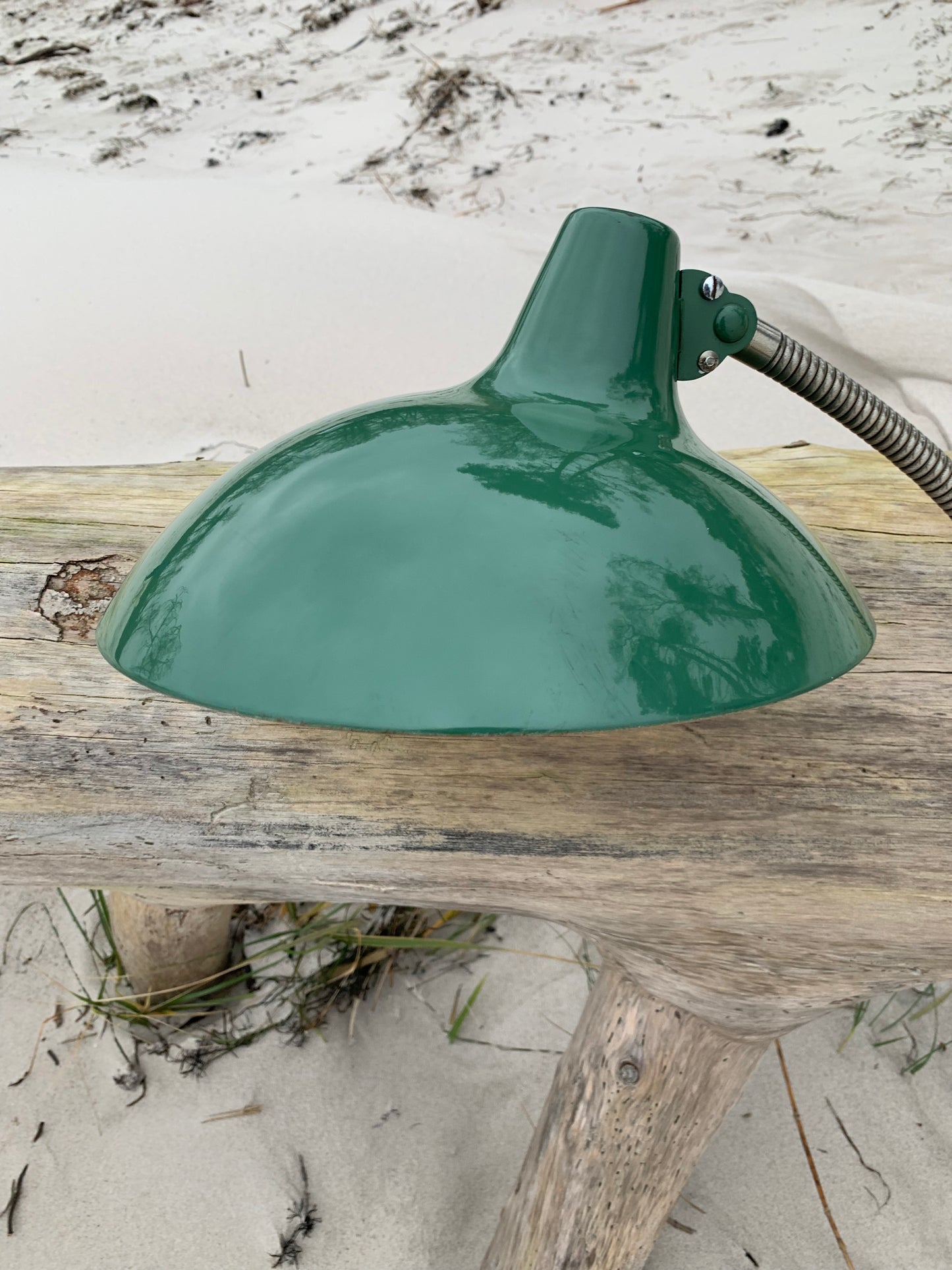 Skøn arkitektlampe med bordbeslag. Lampen er designet af Christian Dell.... til dig der er vild med et godt design der holder. Lampen er charmerende og nykablet. Tidens tand har bidt en lille smule i den, så den henvender sig til dig, der holder af en smule patina.