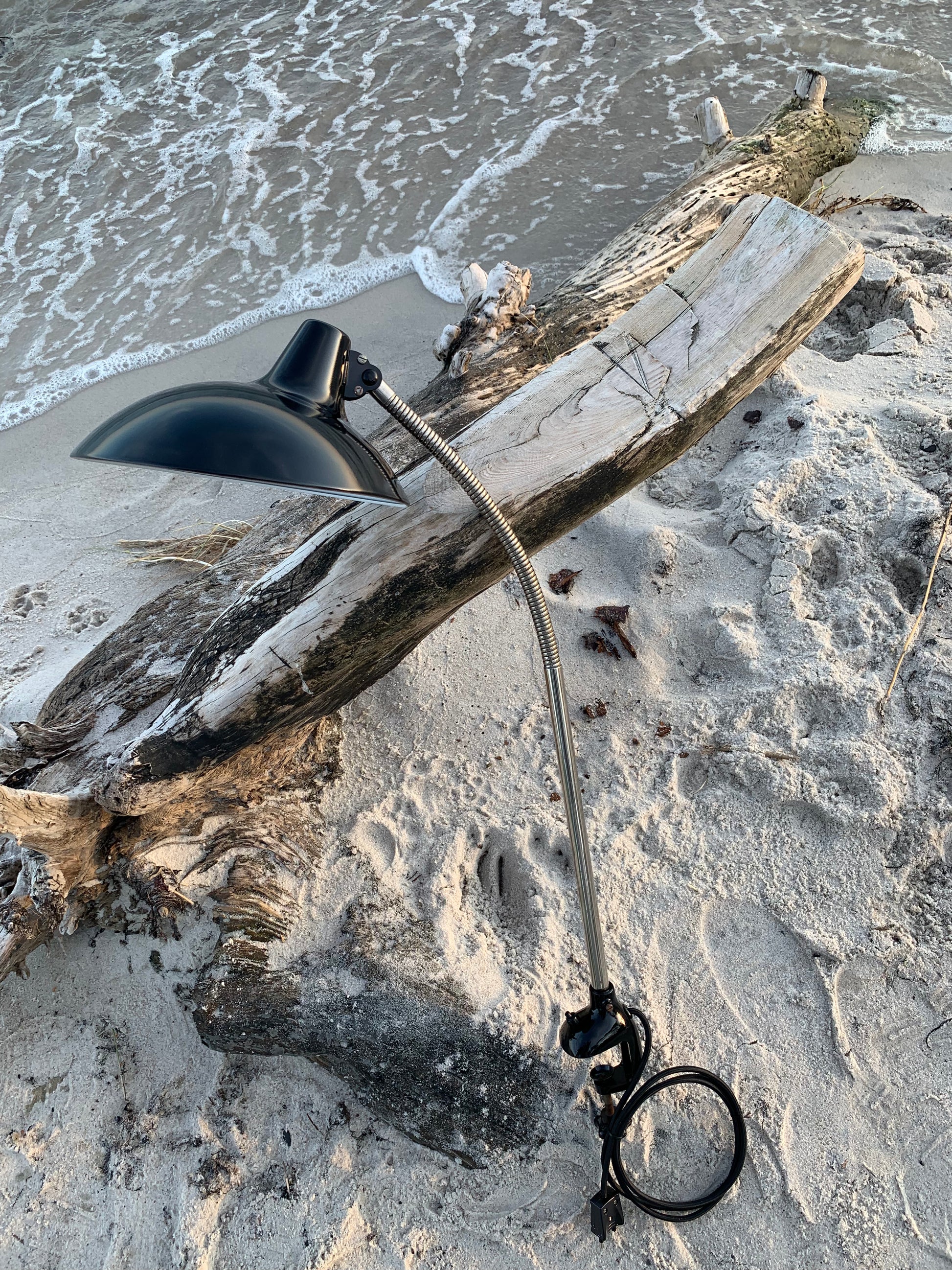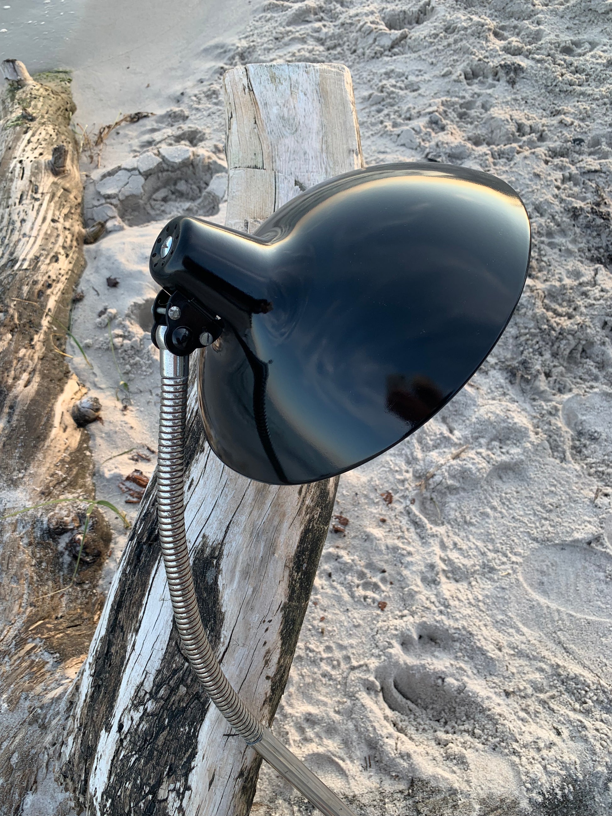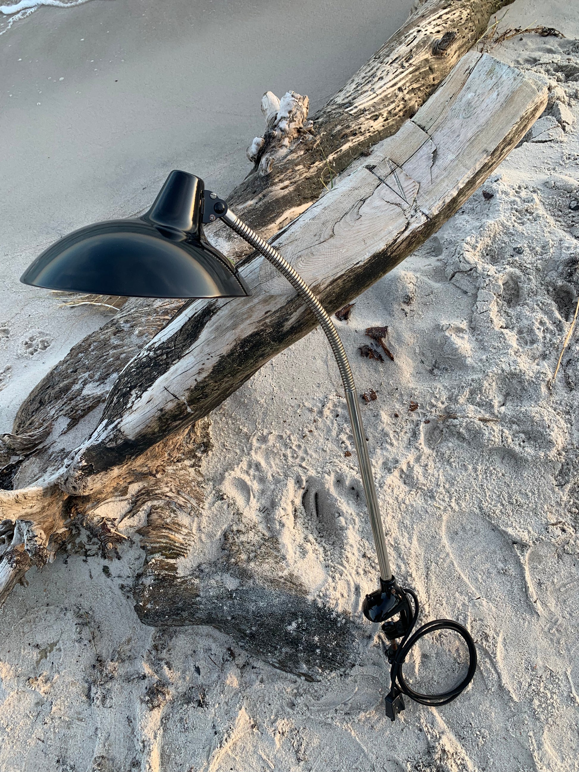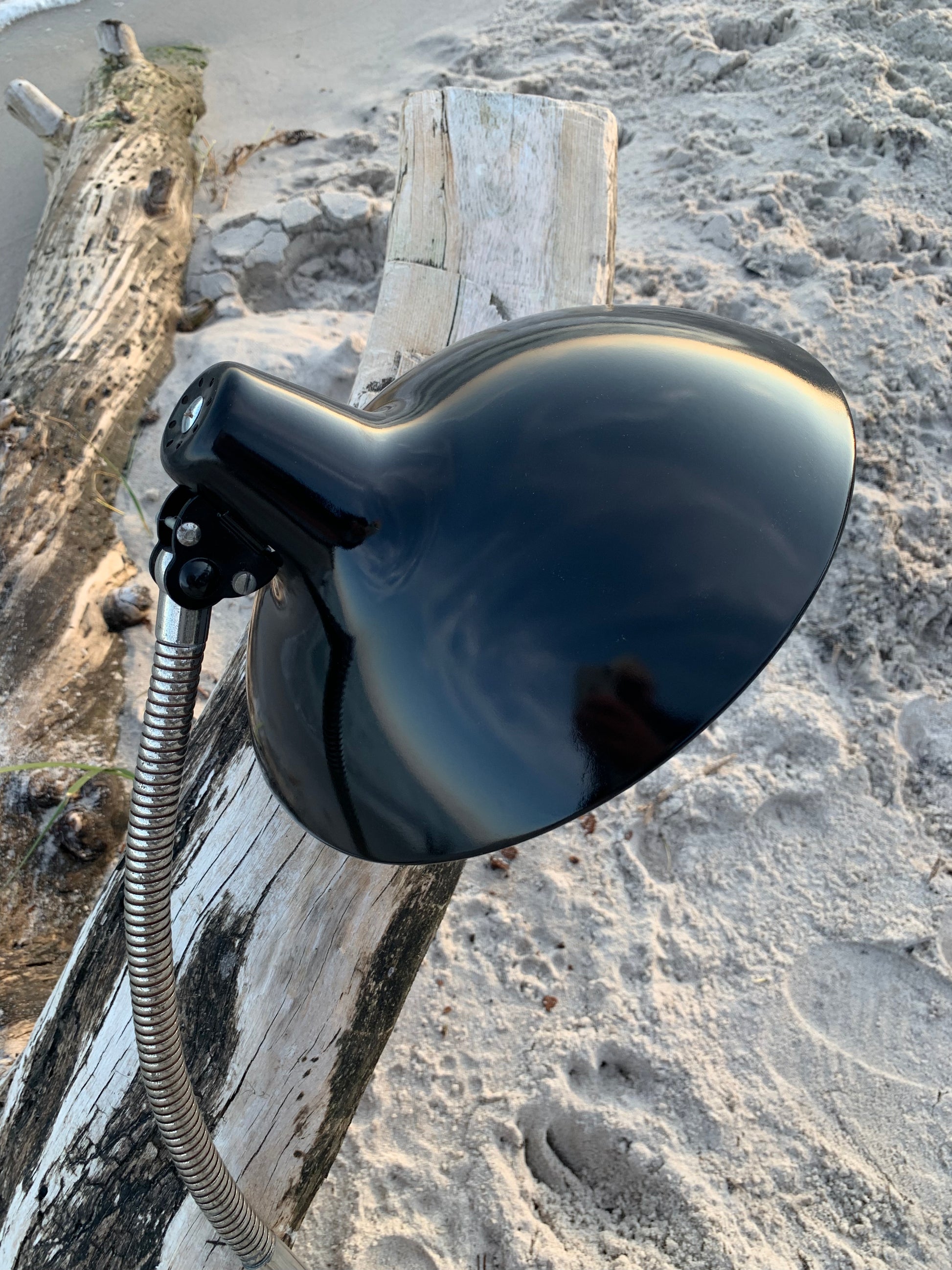 Skøn arkitektlampe med bordbeslag. Lampen er designet af Christian Dell.... til dig der er vild med et godt design der holder. Lampen er både nylakeret samt nykablet.