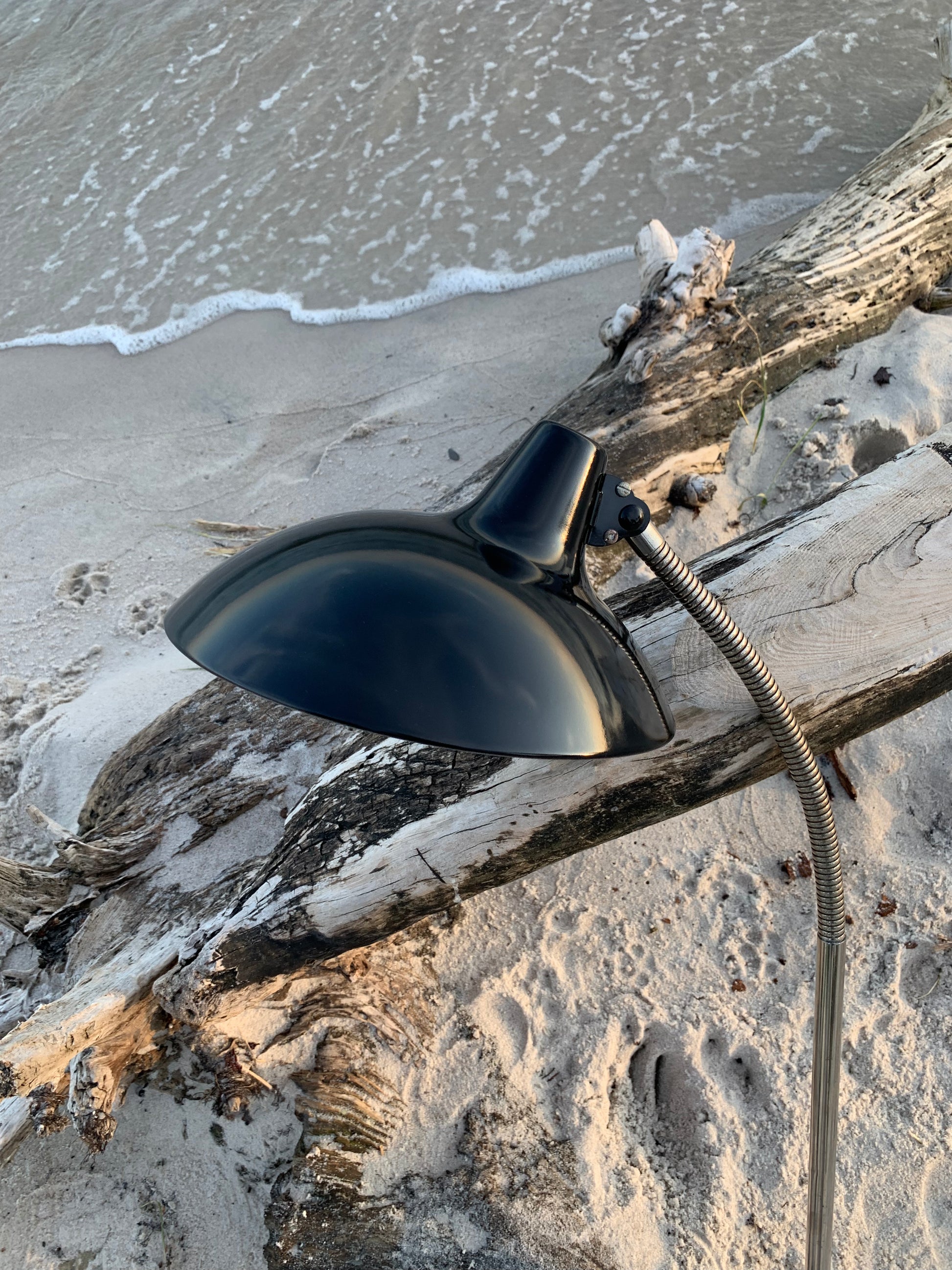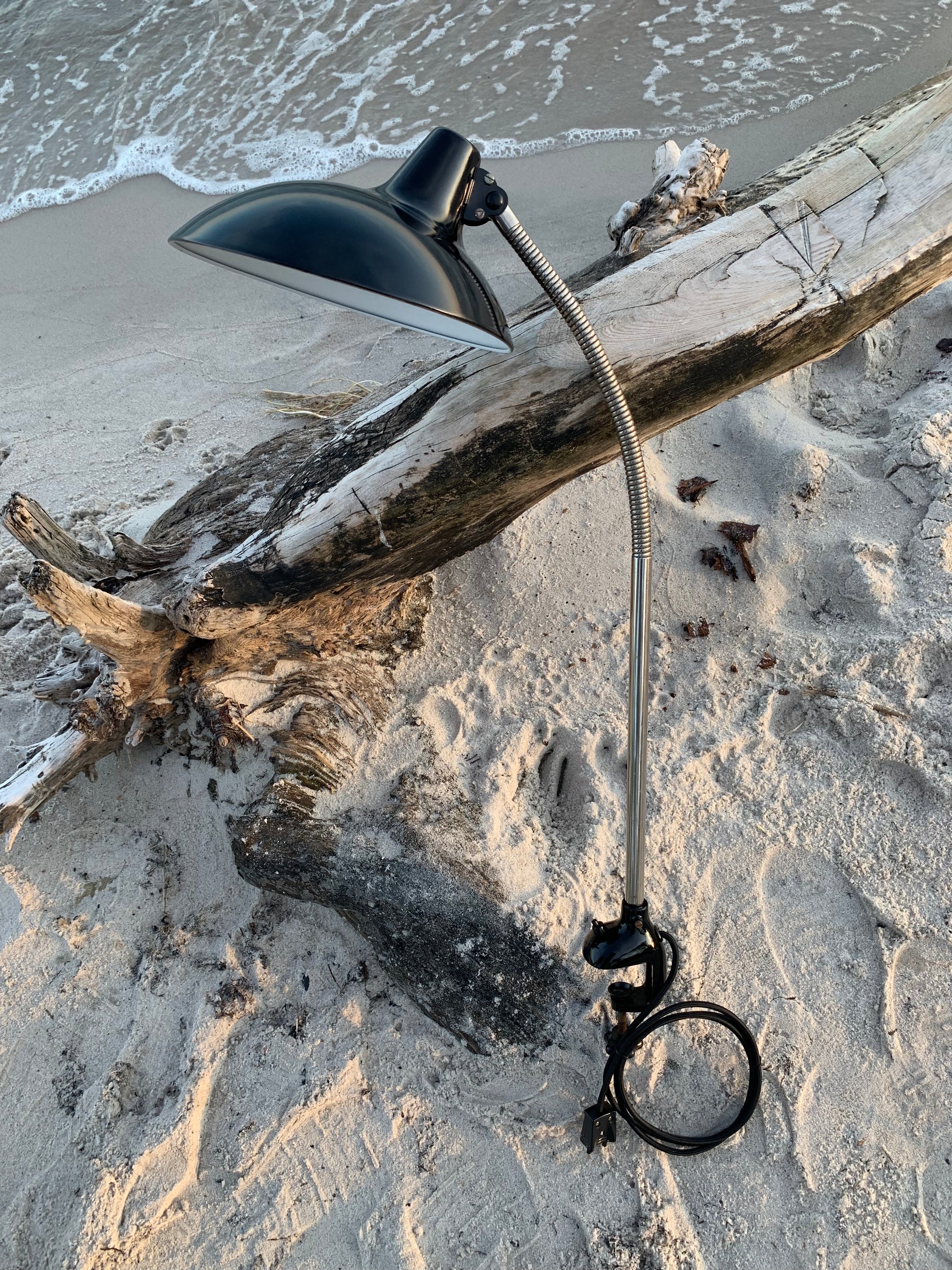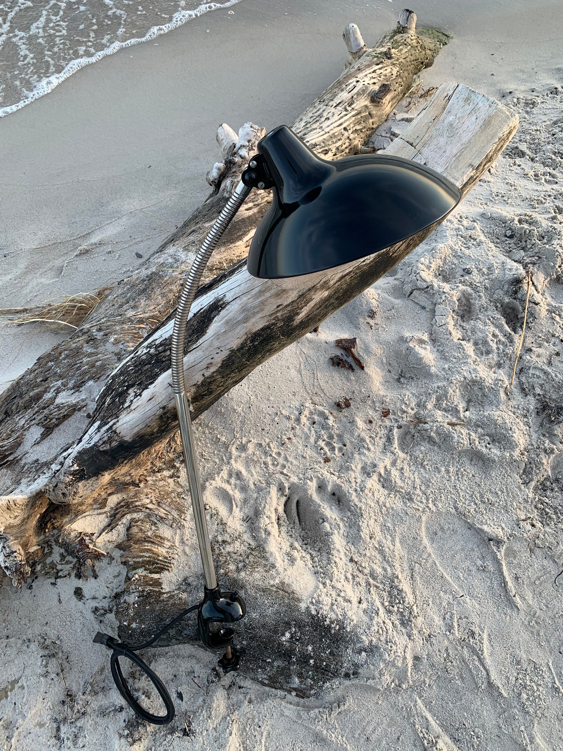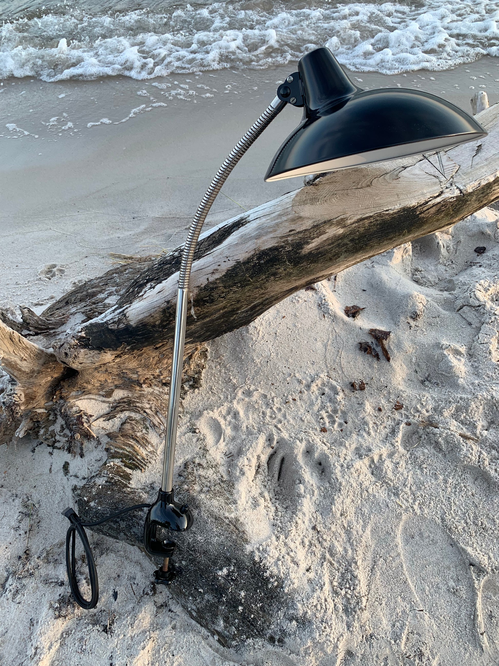 Skøn arkitektlampe med bordbeslag. Lampen er designet af Christian Dell.... til dig der er vild med et godt design der holder. Lampen er både nylakeret samt nykablet.