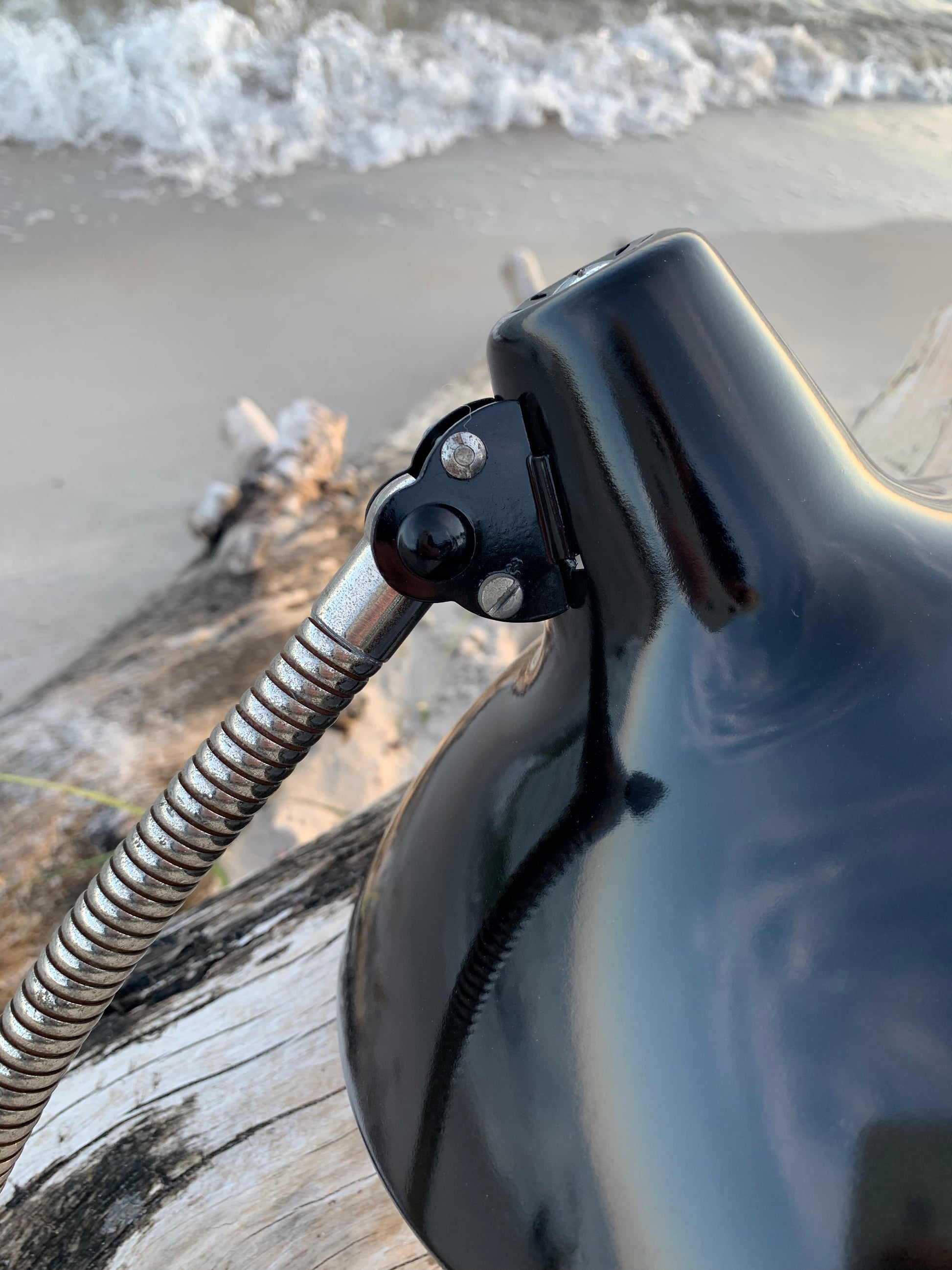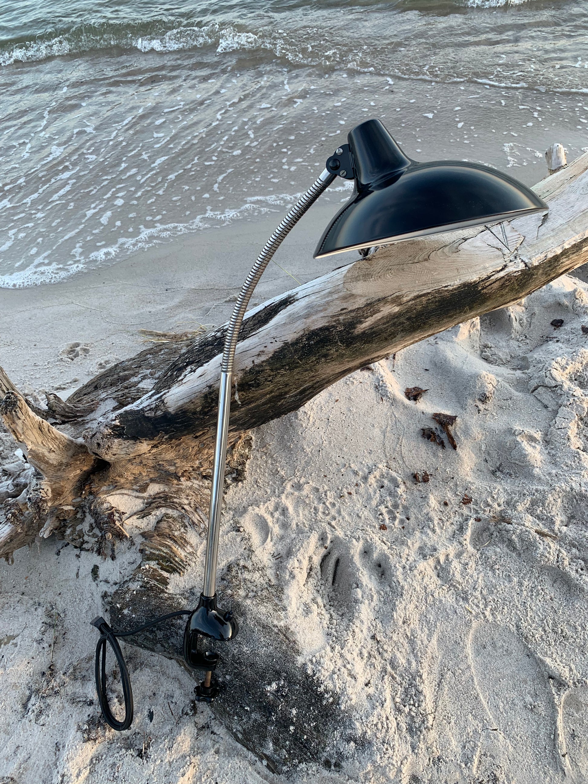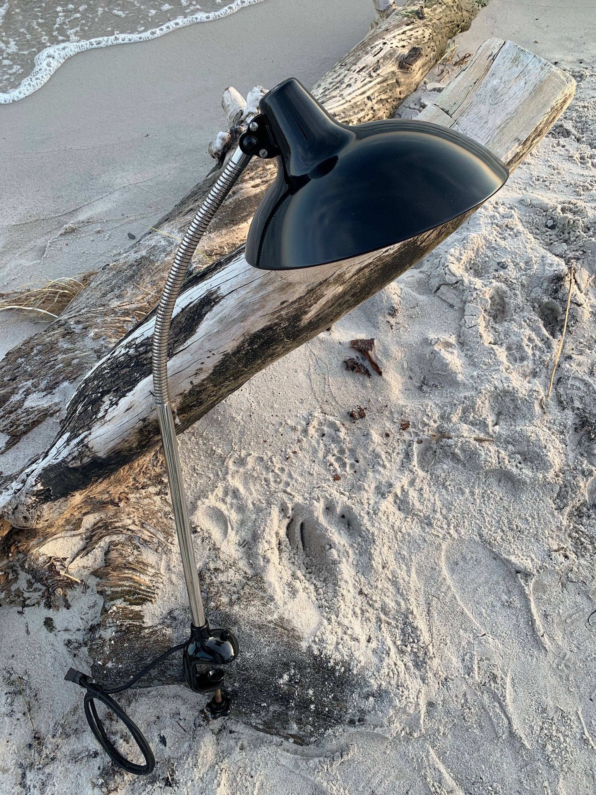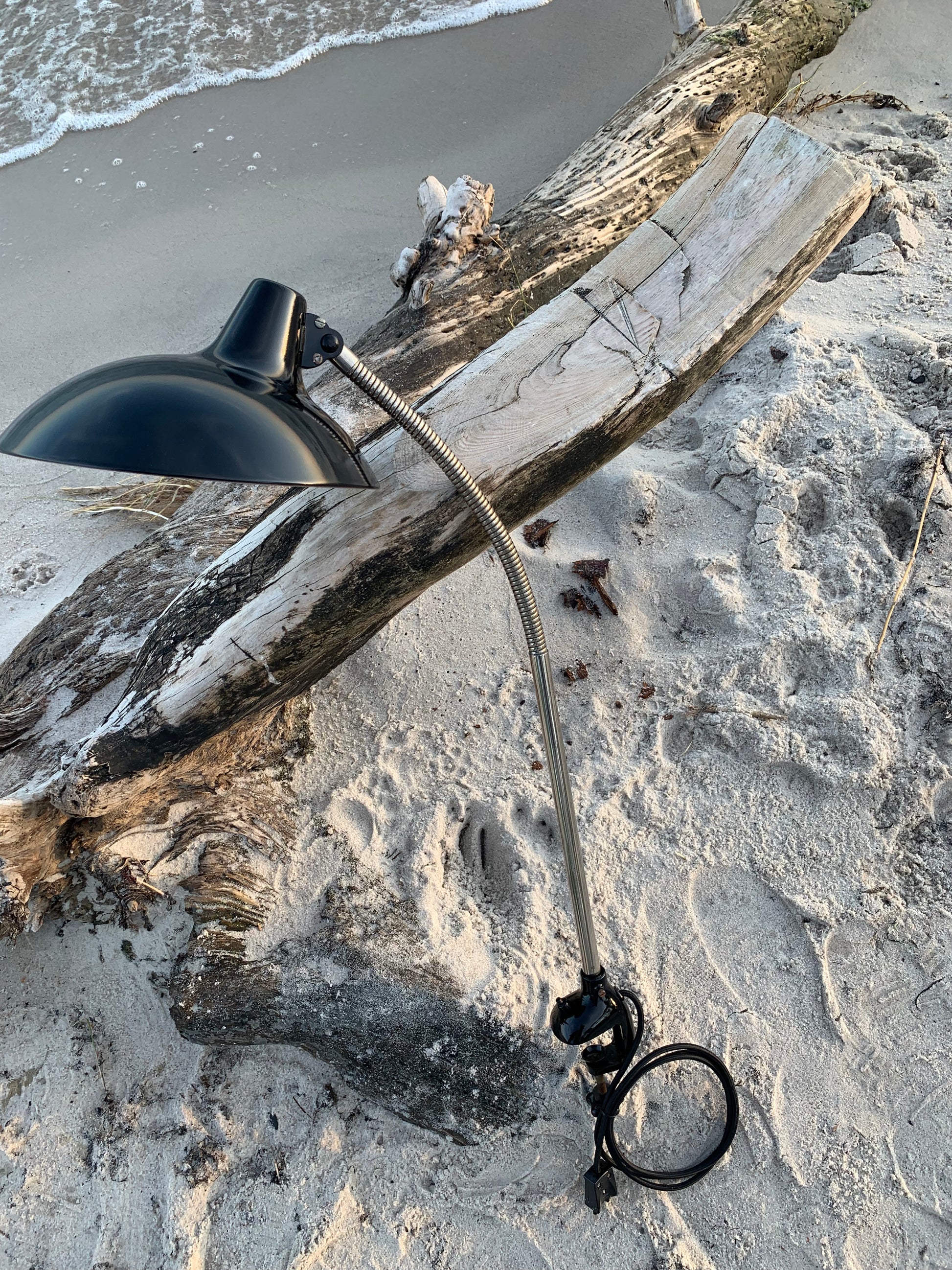 Skøn arkitektlampe med bordbeslag. Lampen er designet af Christian Dell.... til dig der er vild med et godt design der holder. Lampen er både nylakeret samt nykablet.