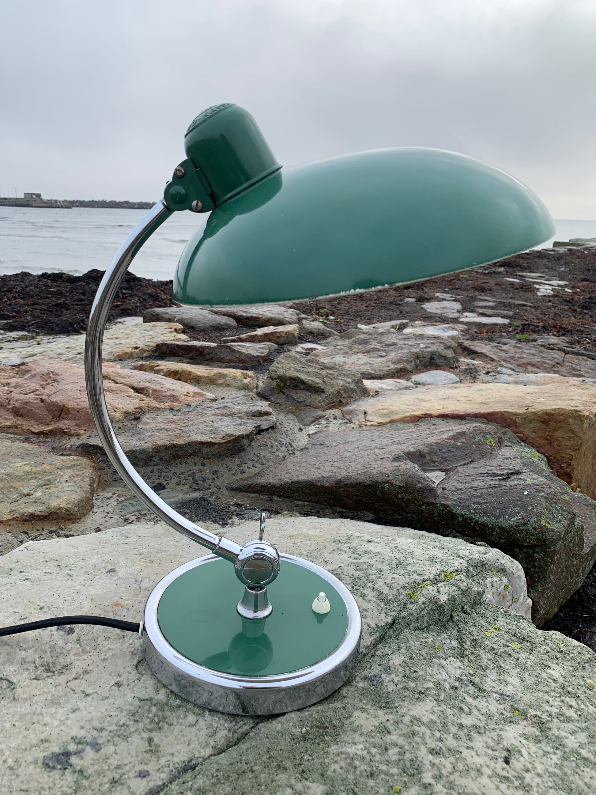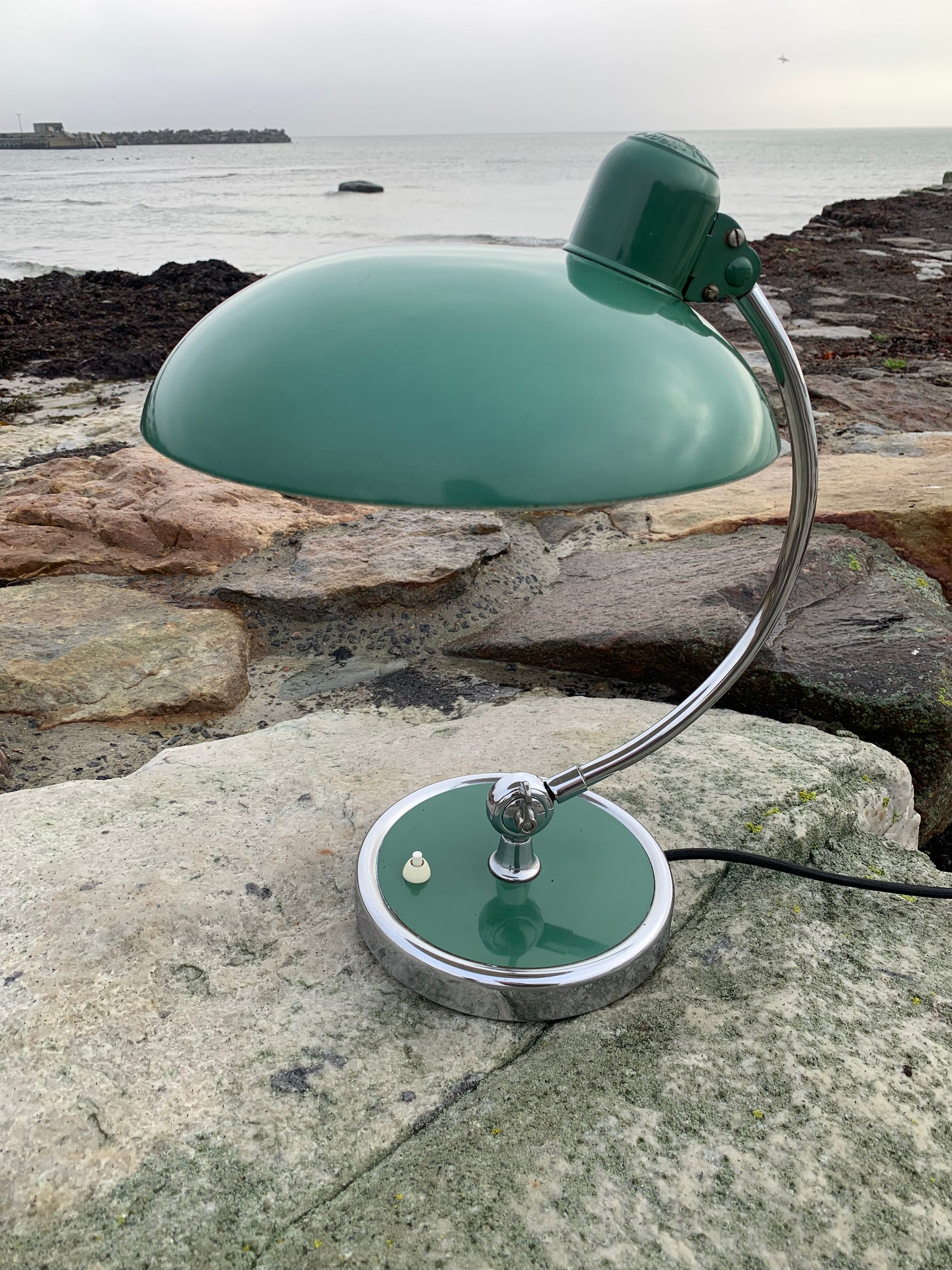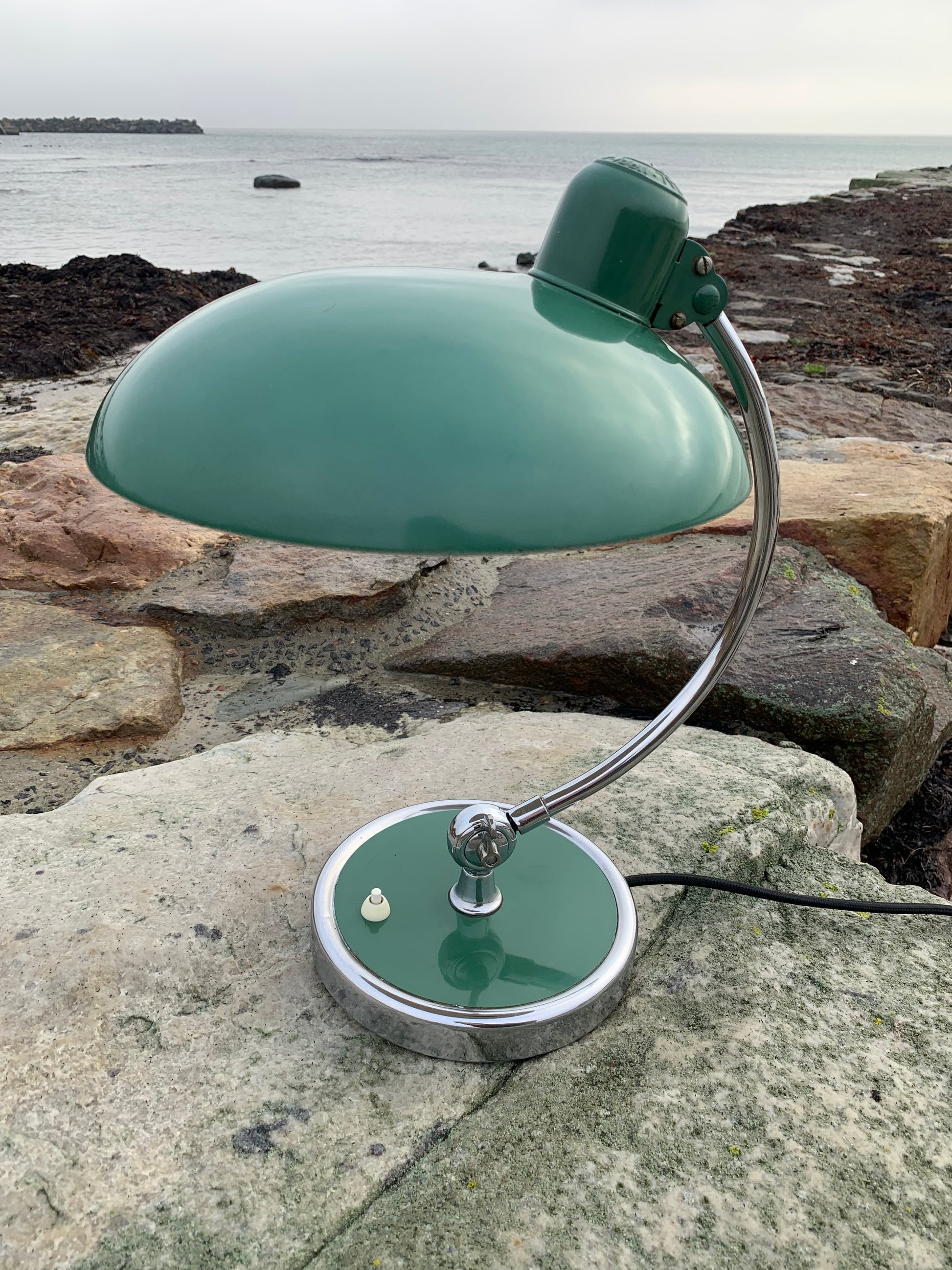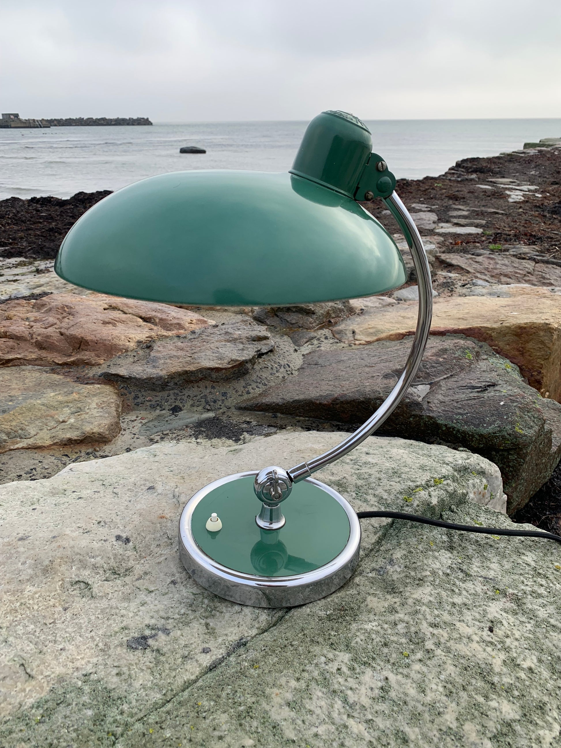 Skøn Kaiser Idell lampe designet af Christian Dell. Denne smukke lampe henvender sig til dig, der ser det smukke i et godt og tidsløst design. De fine gamle Kaiser Idell lamper er et vidnesbyrd om god kvalitet samt godt håndværk. Disse skønne gamle vintagelamper har ofte lidt aldersrelaterede brugsspor, der både forstærker ægtheden og originaliteten. Disse spor både vidner om samt fortæller historien om lampens rejse igennem mange årtier.