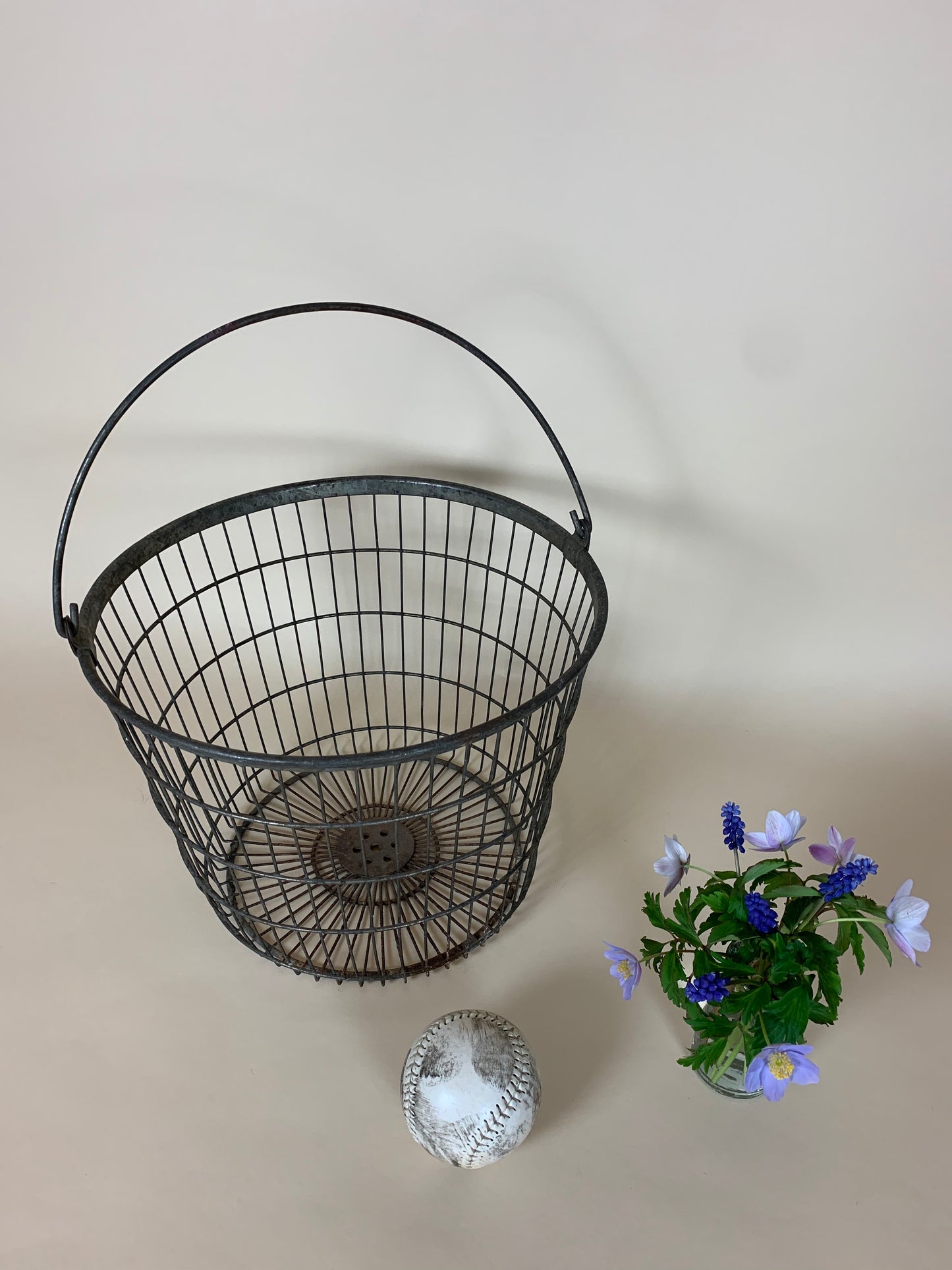 Historie: Gammel Belgisk kurv i zink, denne slags kurve har oprindeligt været brugt til opsamling af kartofler.