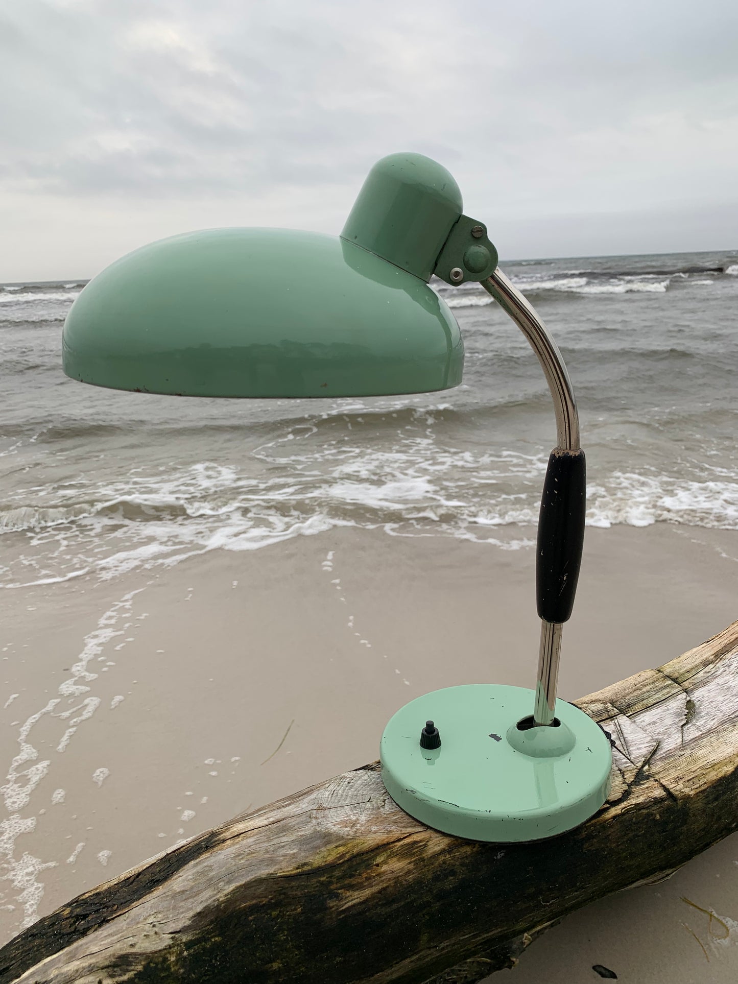 Skøn vintage lampe fra østriske Koranda. Denne model er tilskrevet Christian Dell og fremstår i en smuk grøn farve. Lampen fremstår nykablet og henvender sig til dig der ser det perfekte i det uperfekte, idet tidens tand har bidt i den.