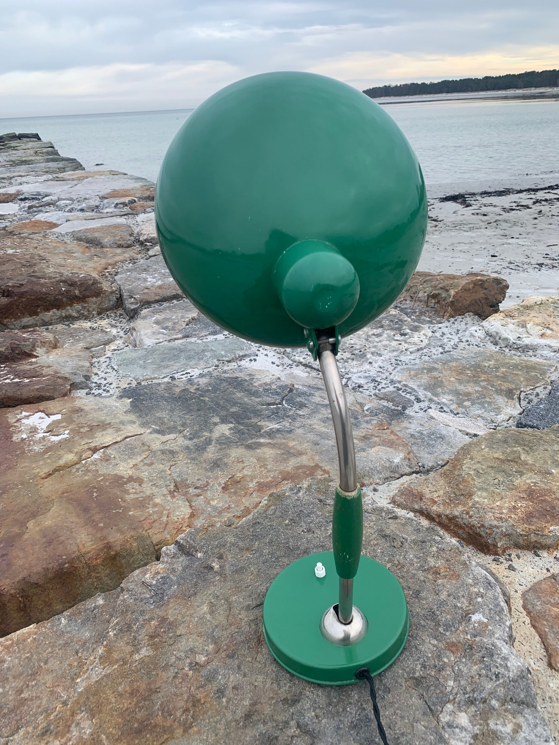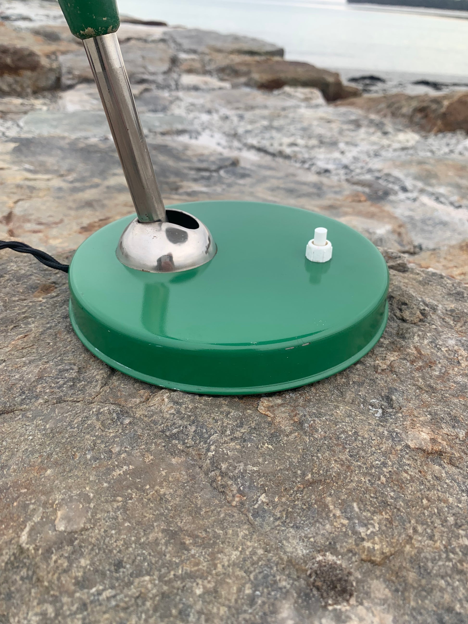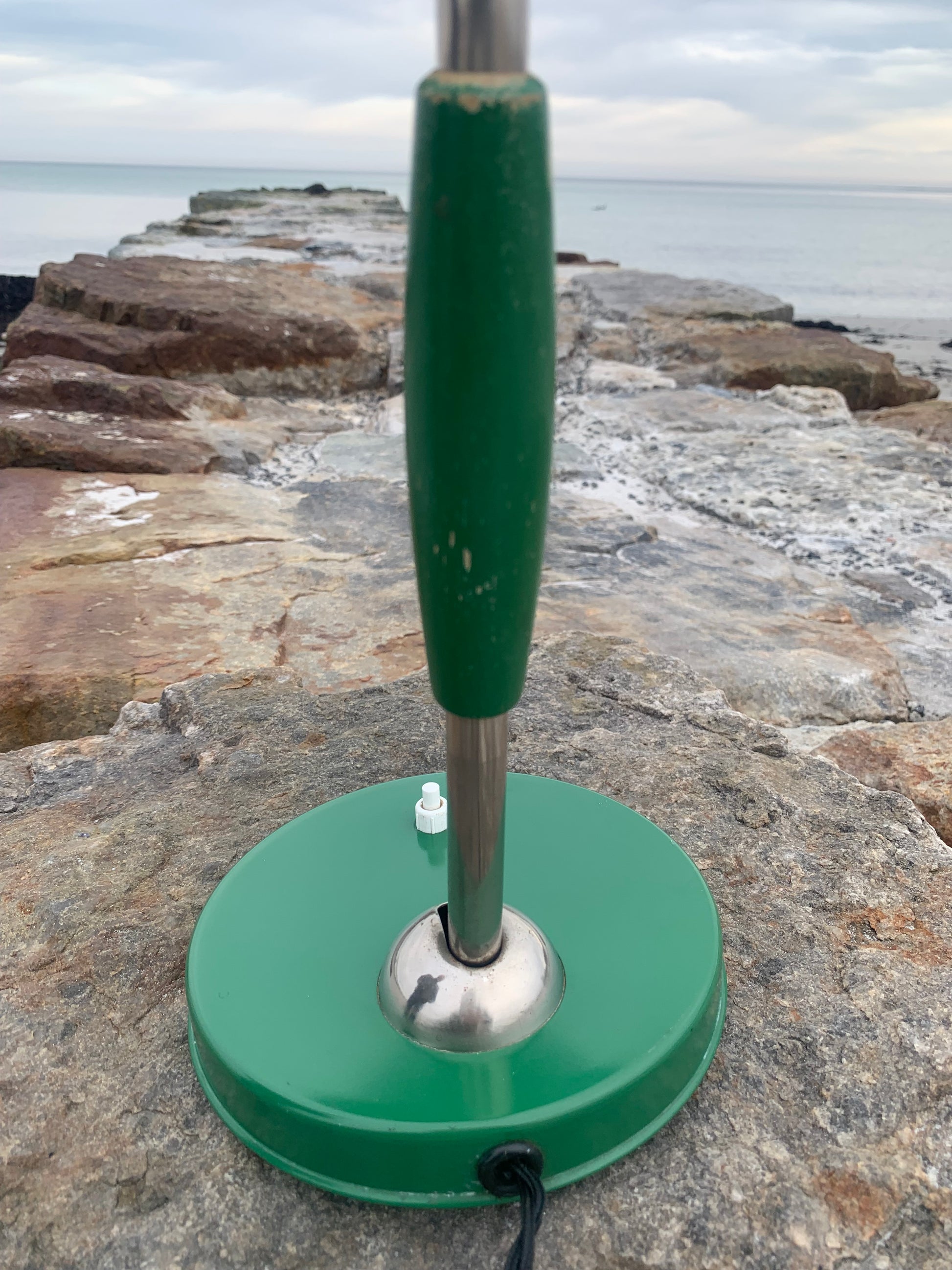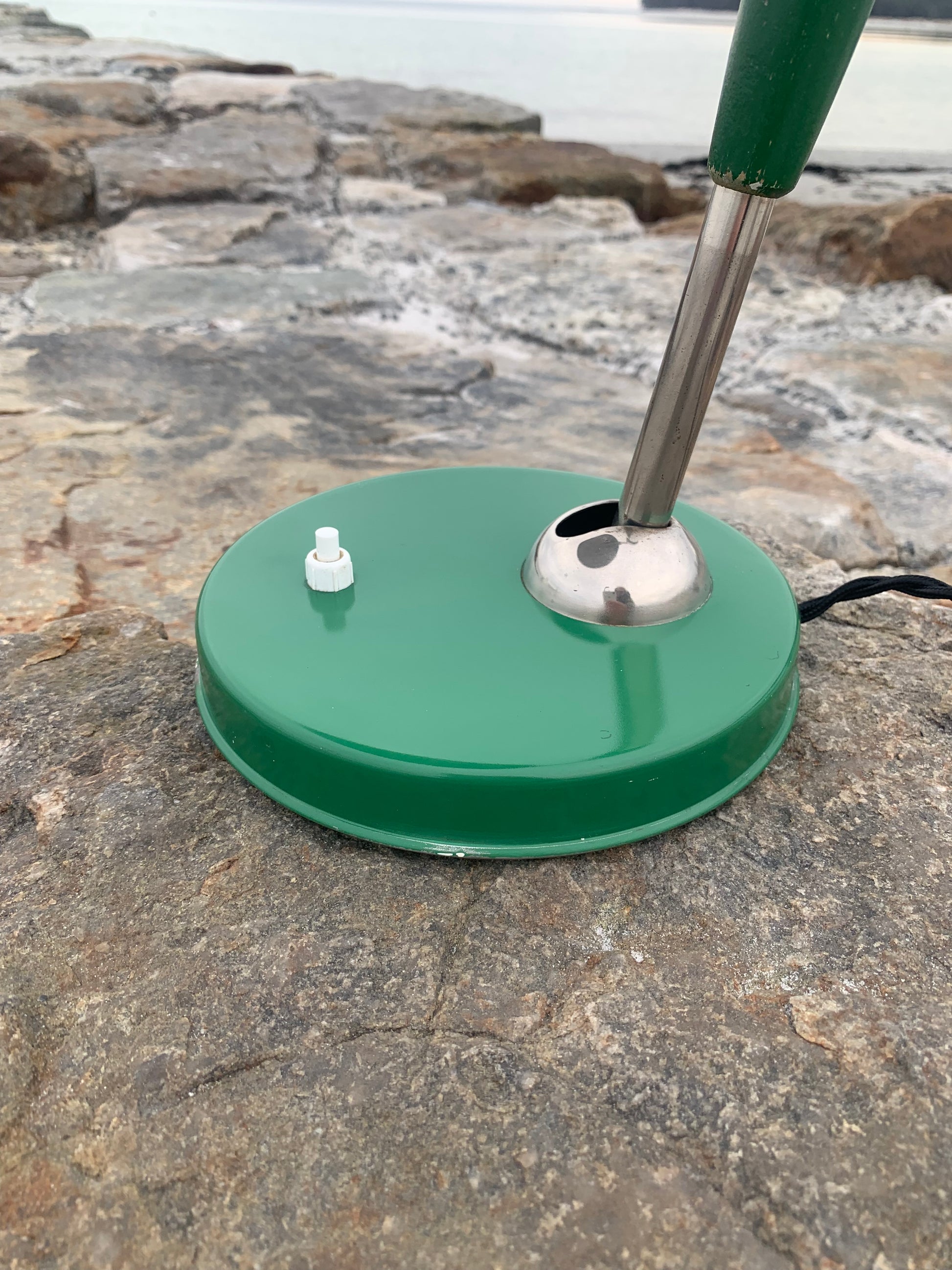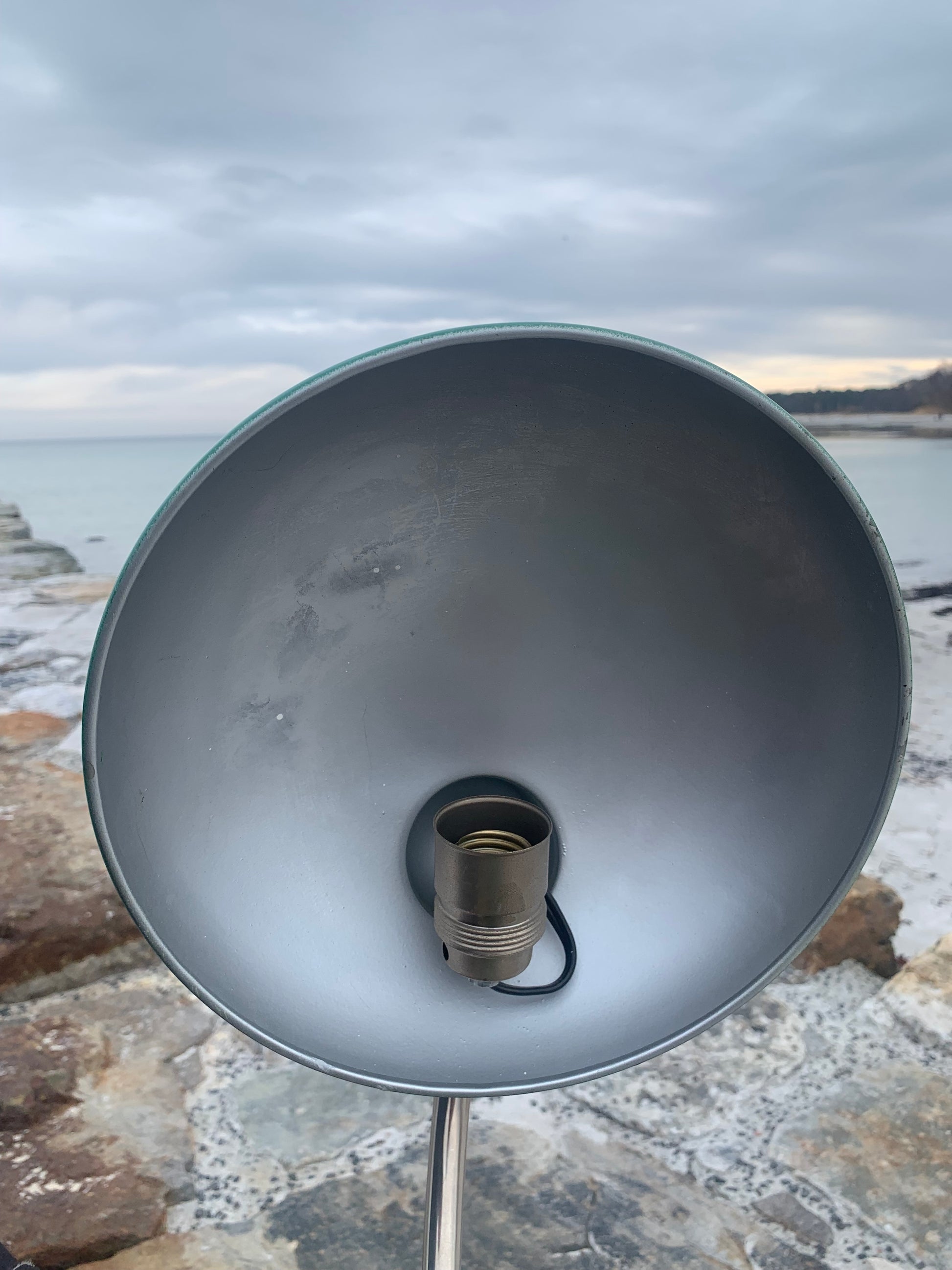 Skøn vintage lampe fra østriske Koranda. Denne model er tilskrevet Christian Dell. Tidens tand har bidt lidt i lakken på lampen der fremstår nykablet og henvender sig til dig der holder af originalitet og ser det perfekte i det uperfekte.