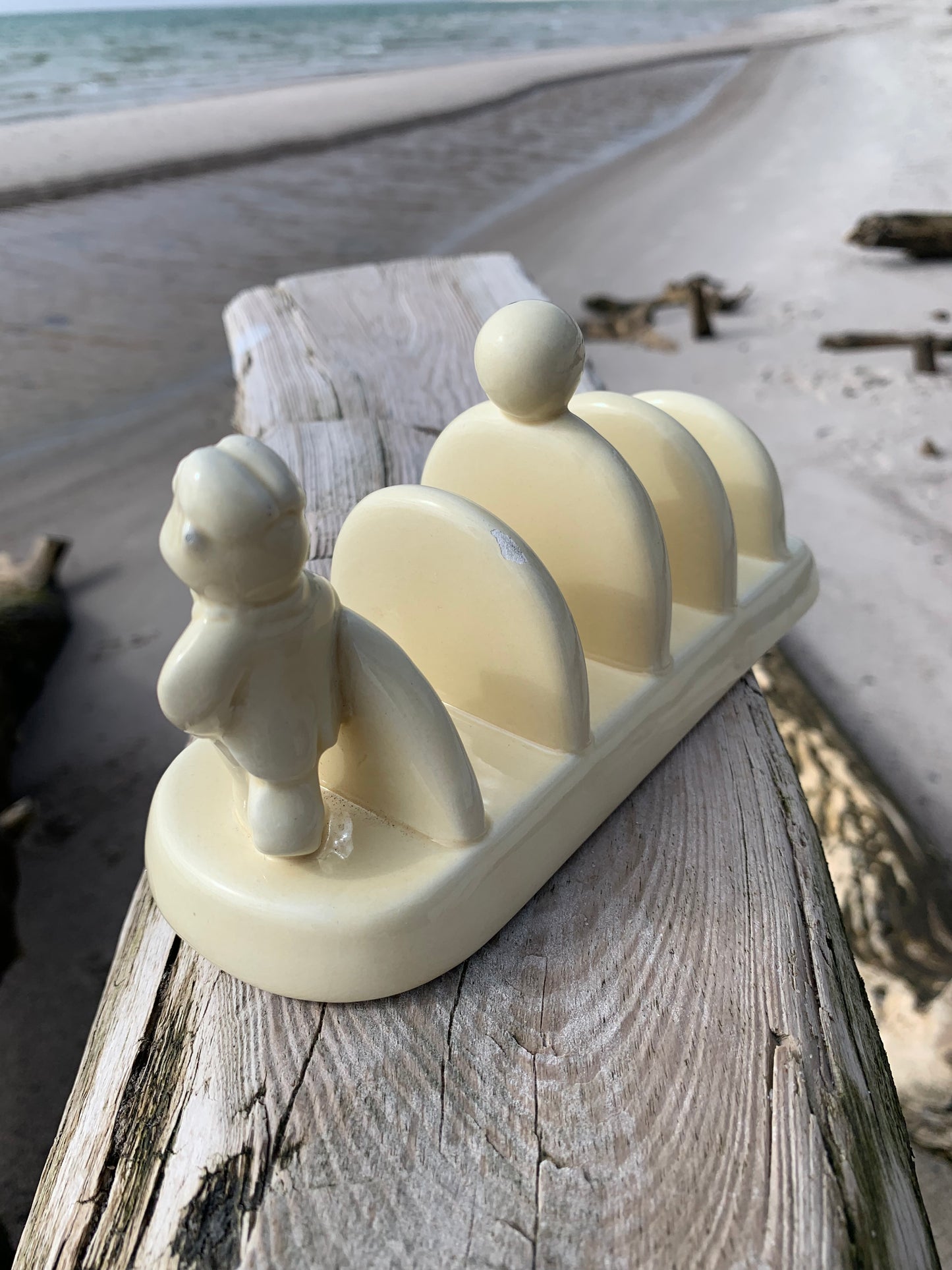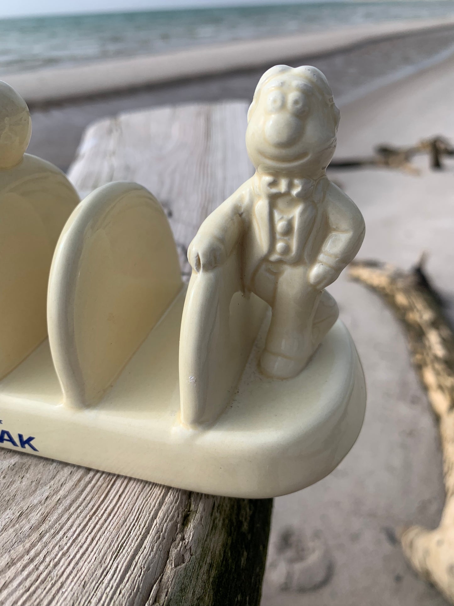 Sjov gammel reklame toastholder fra Lurpak. Den er utrolig charmerende også selvom den desværre har et lille nag på bagsiden.
