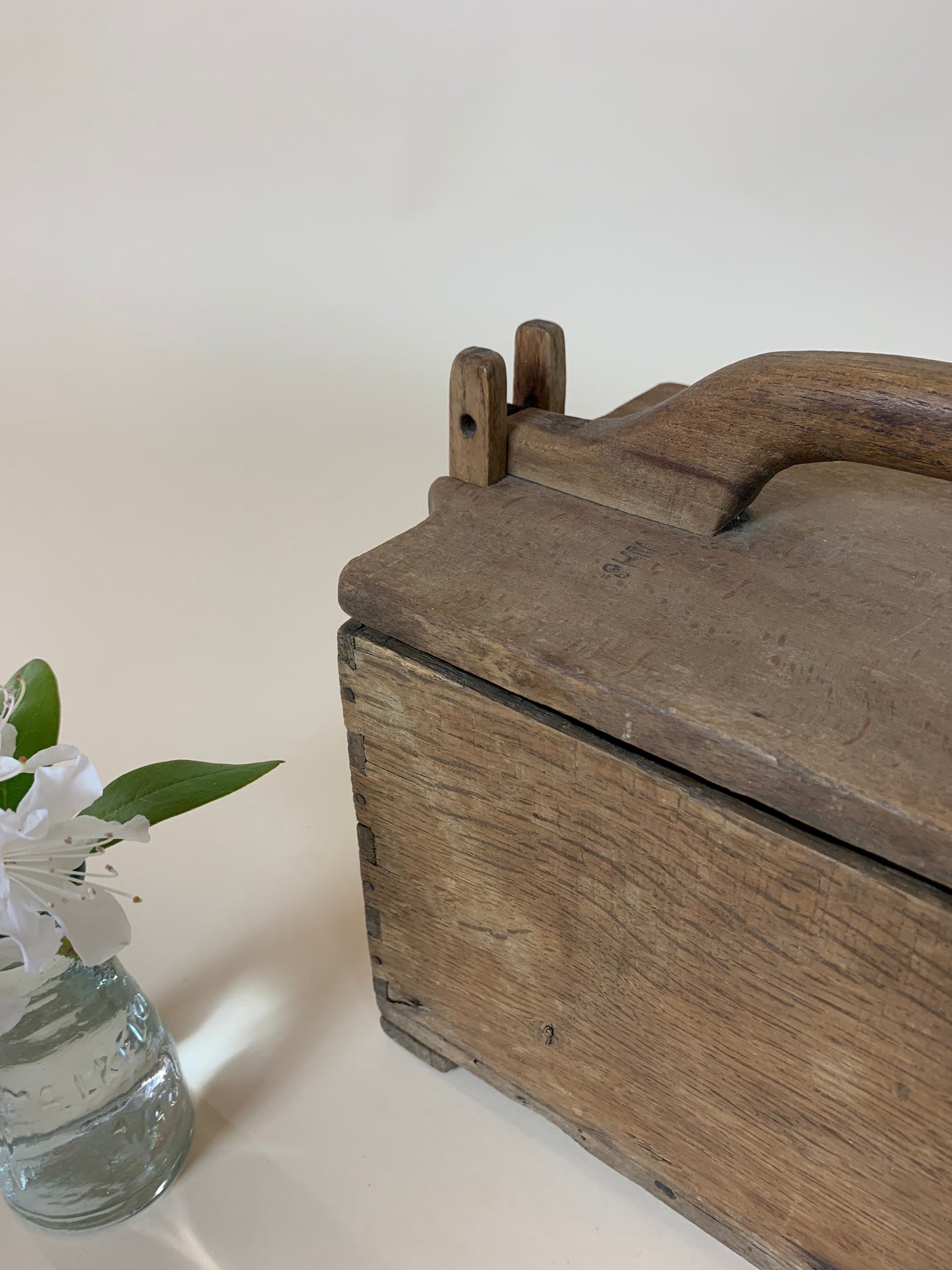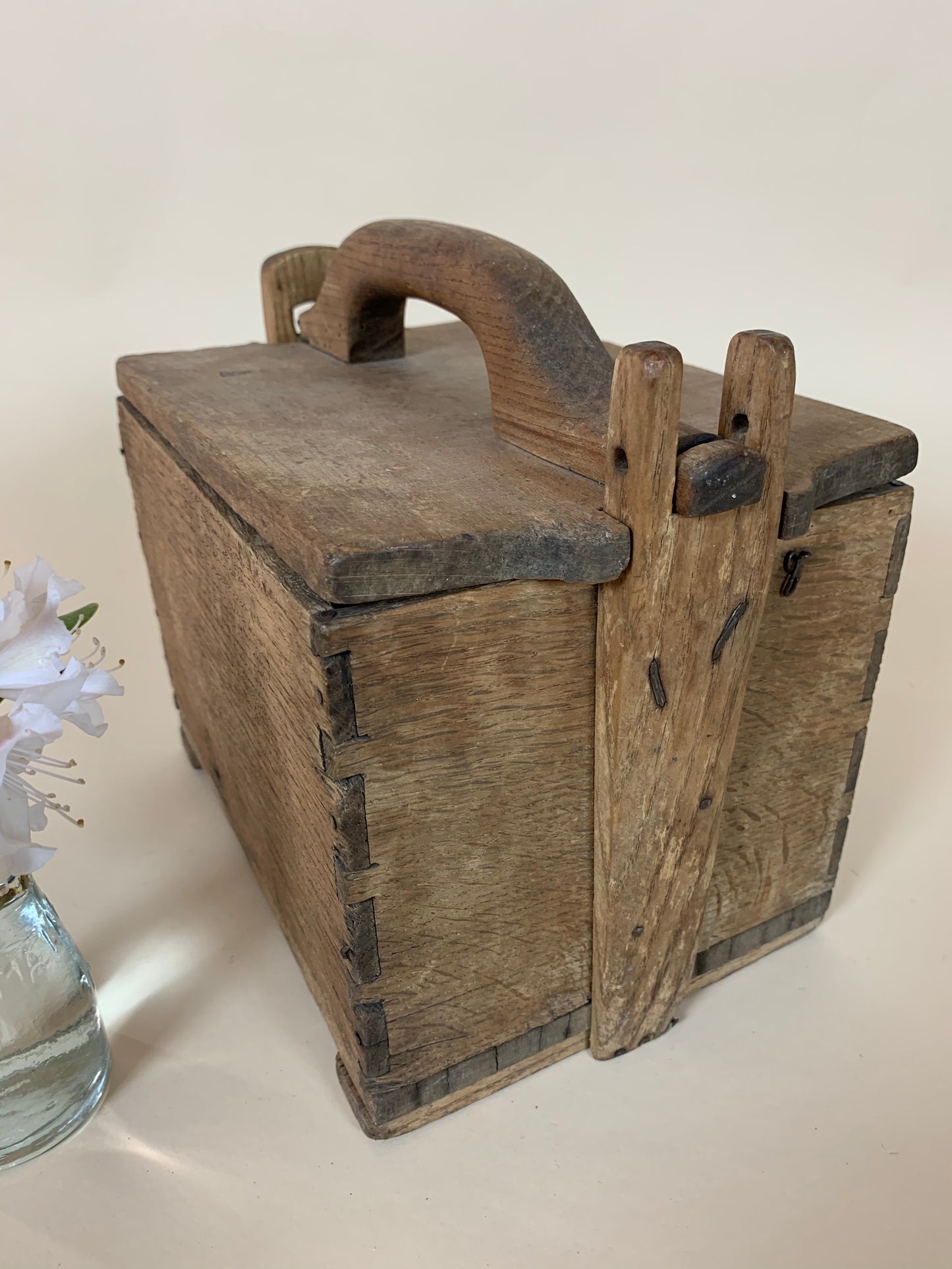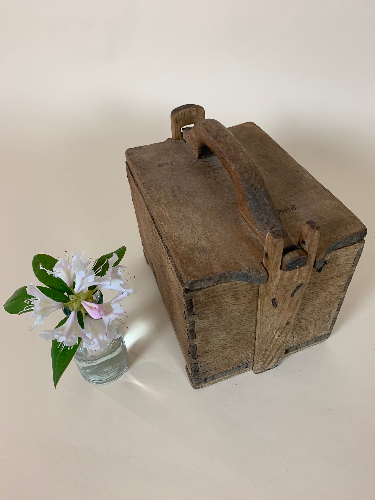 Vores bedste bud er at dette er en gammel madkasse (tejne). Hvis det er rigtigt, så er det den flotteste madkasse vi har set. Den har så mange fine og lækre detaljer at vi slet ikke kan blive trætte af at kigge på den.