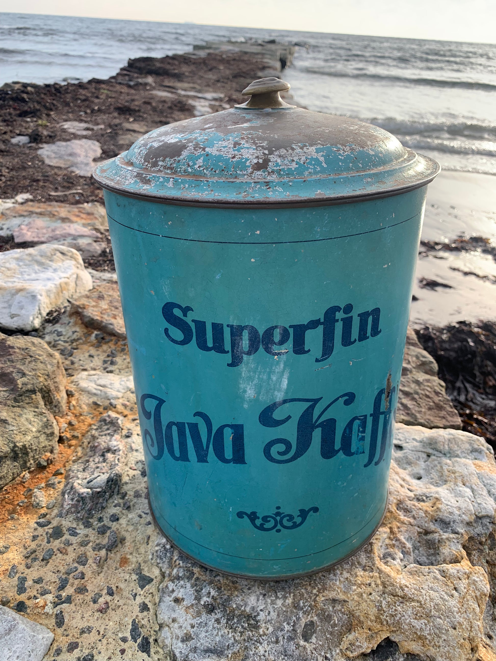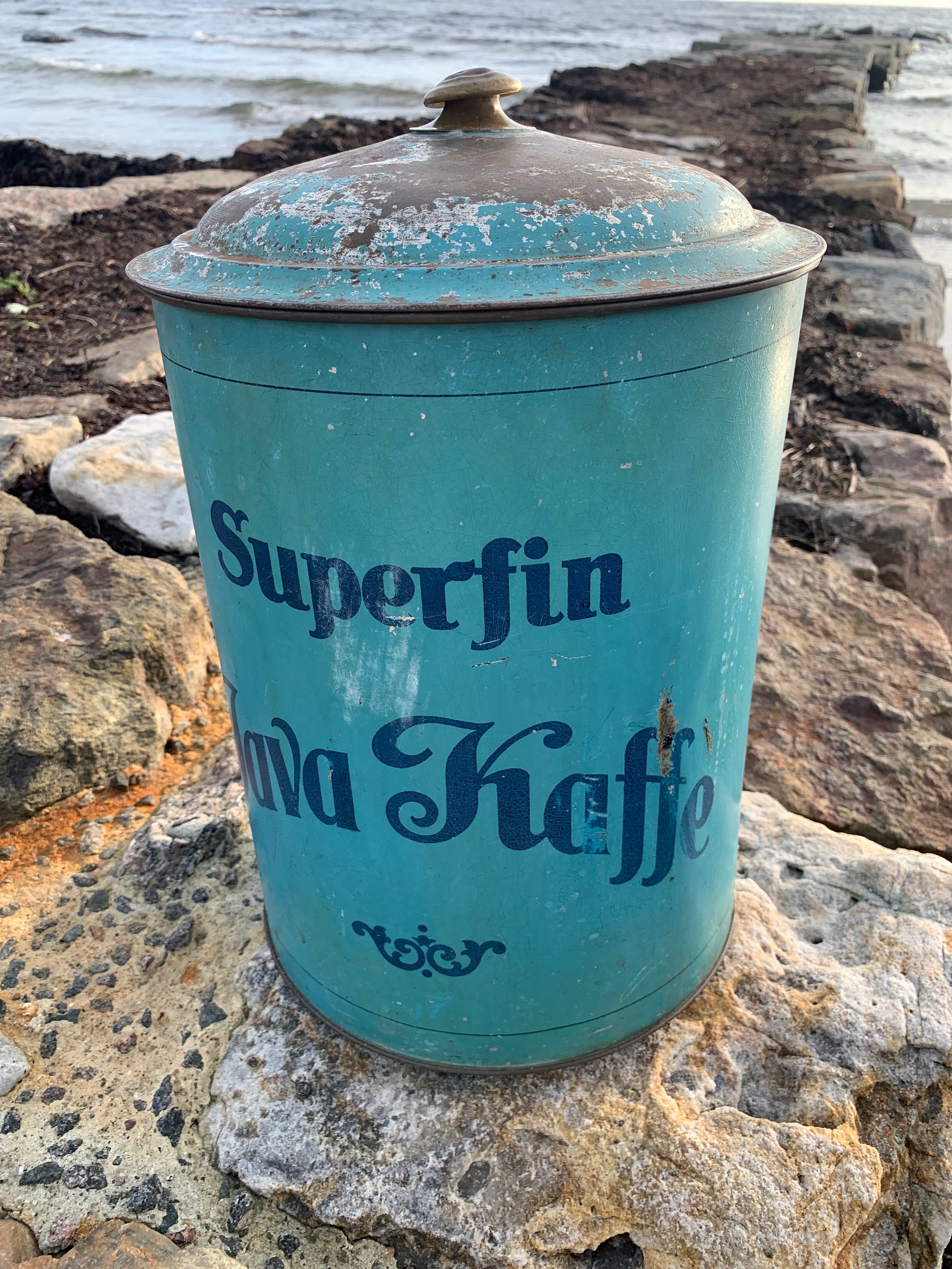 Meget stor og charmerende kaffedåse med reklame. Dåsen har masser af skøn patina og er udover at være meget dekorativ også et rigtig samleobjekt
