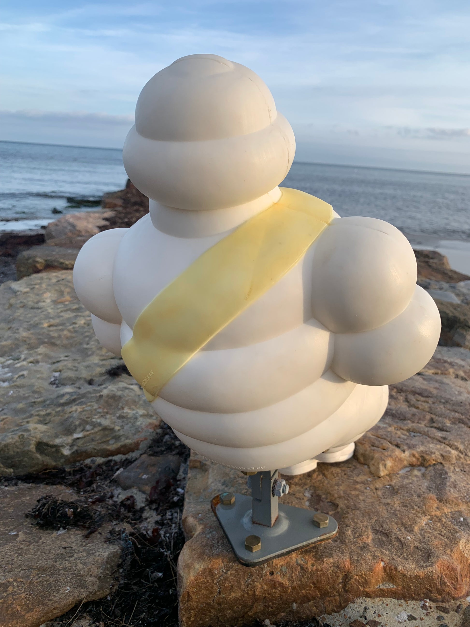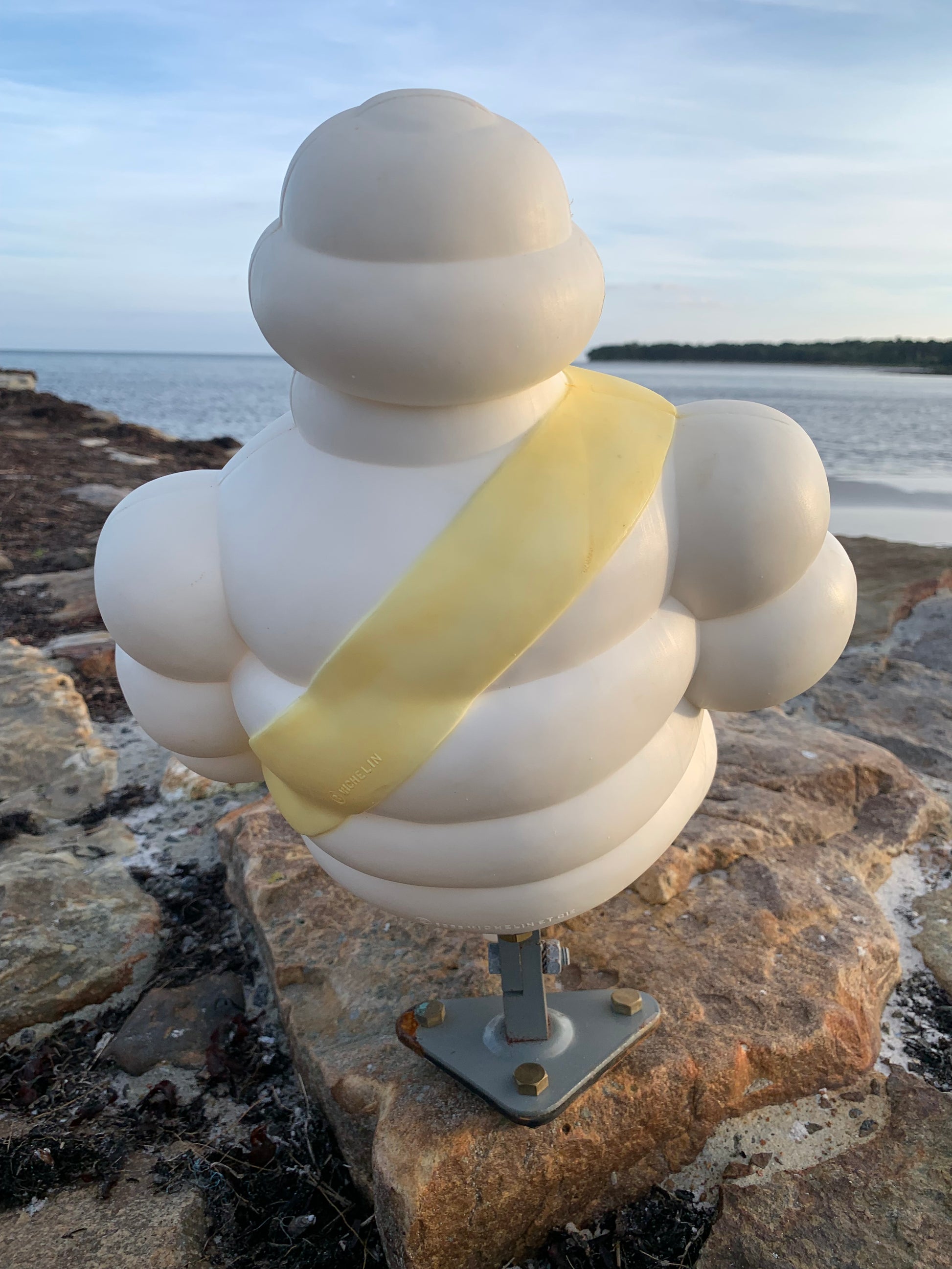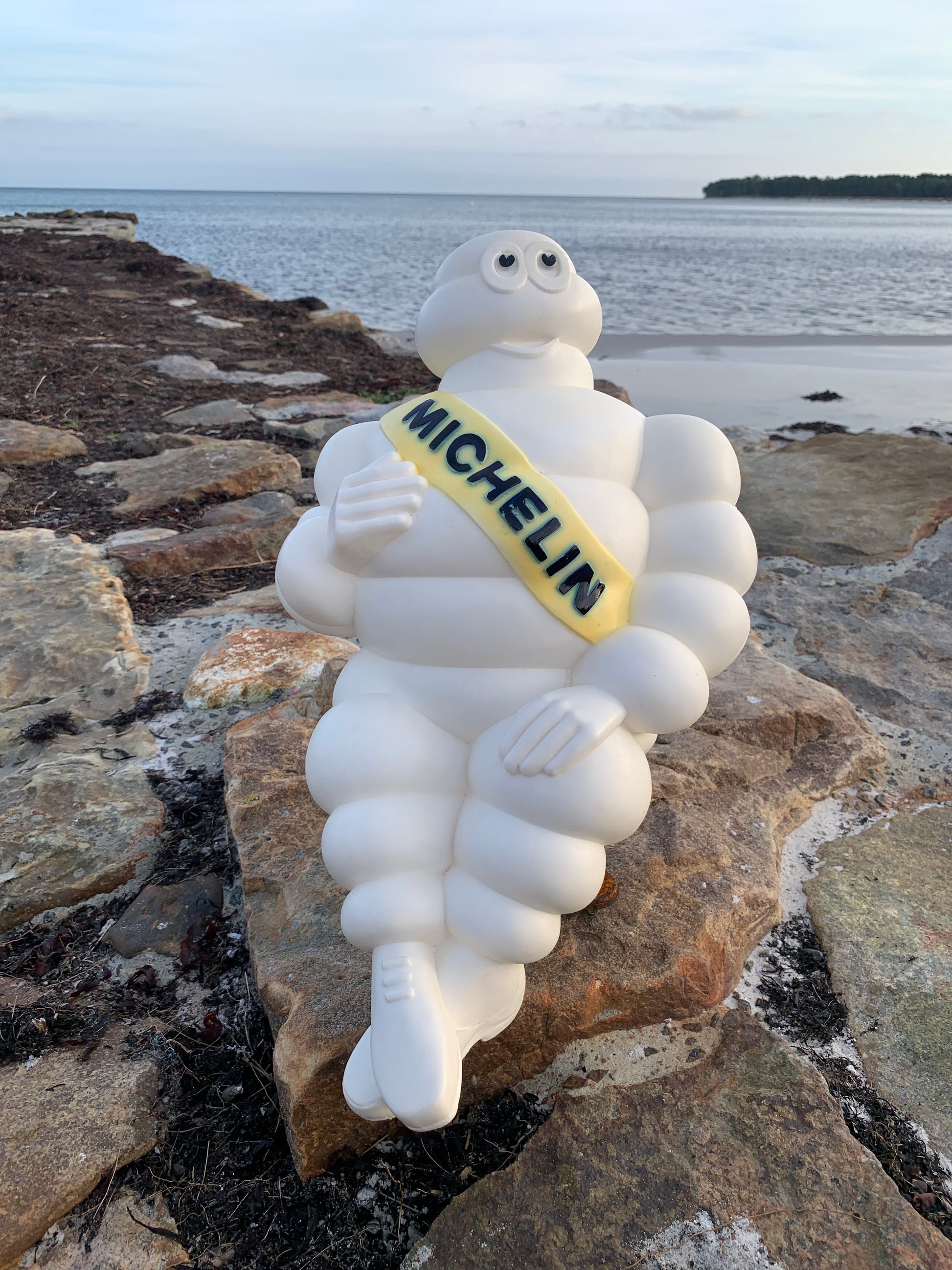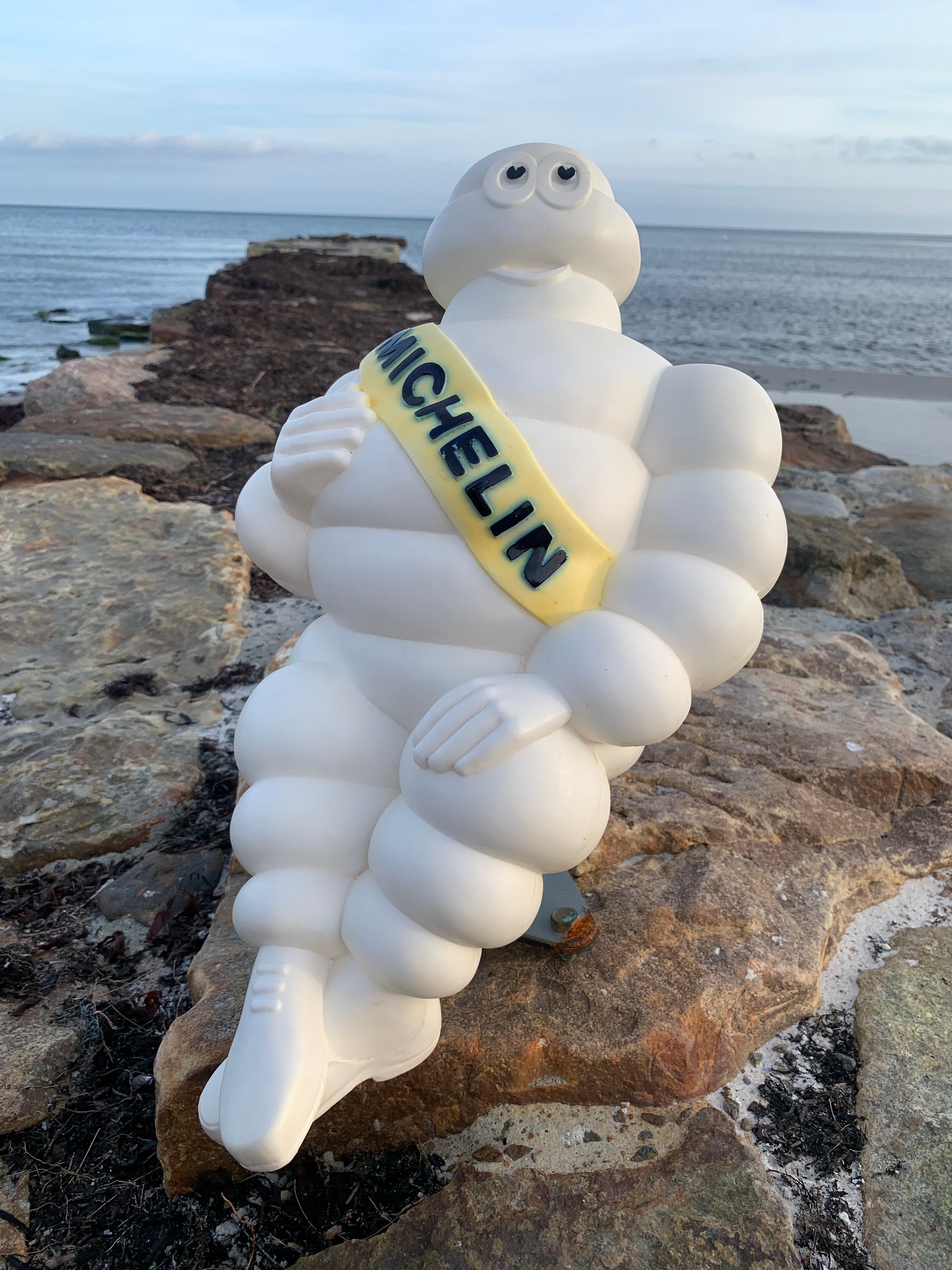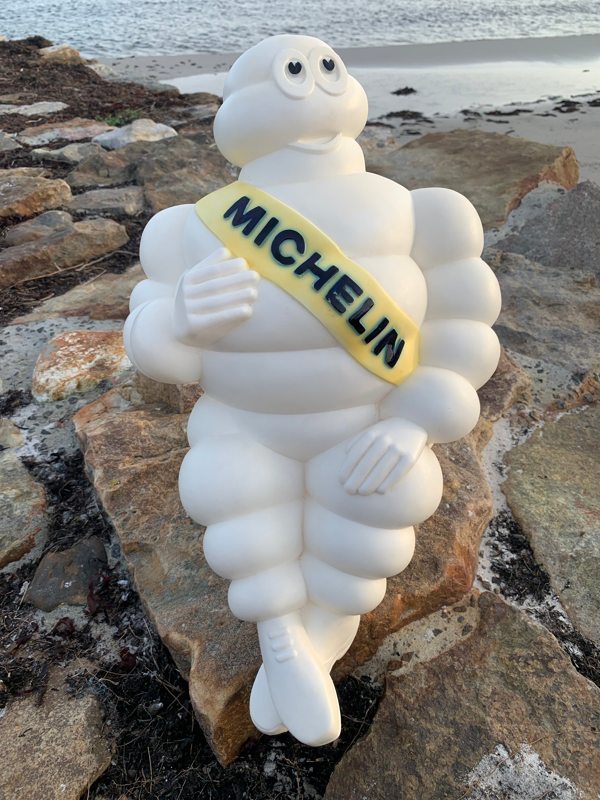Historie: Har du undret dig over at Michelin manden er hvid? Dette skulle efter sigende skyldes, at gummidæk fra dækfirmaet Michelin inden 1912 var indfarvet lysgrå/hvide. Senere begyndte man at tilsætte kulstof (for at gøre dækkene mere holdbare) Michelin manden blev for første gang introduceret i 1894. Brødrene bag virksomheden Michelin besluttede sig i år 1900 for at udgive en bog med restaurant tips, da det måske ville få folk til at tage flere og længere køreture og dermed oftere få behov for at købe dæk. Det blev til det vi i dag kender som Michelin guiden. I år 2000 kårede Financial Times Michelin manden til den bedste mærkevare figur igennem tiderne, samt den ældste og mest kendte.