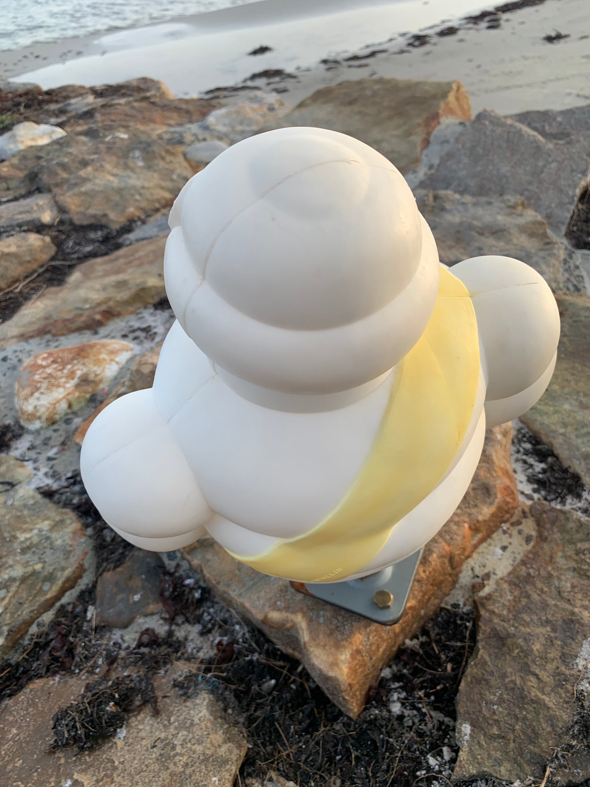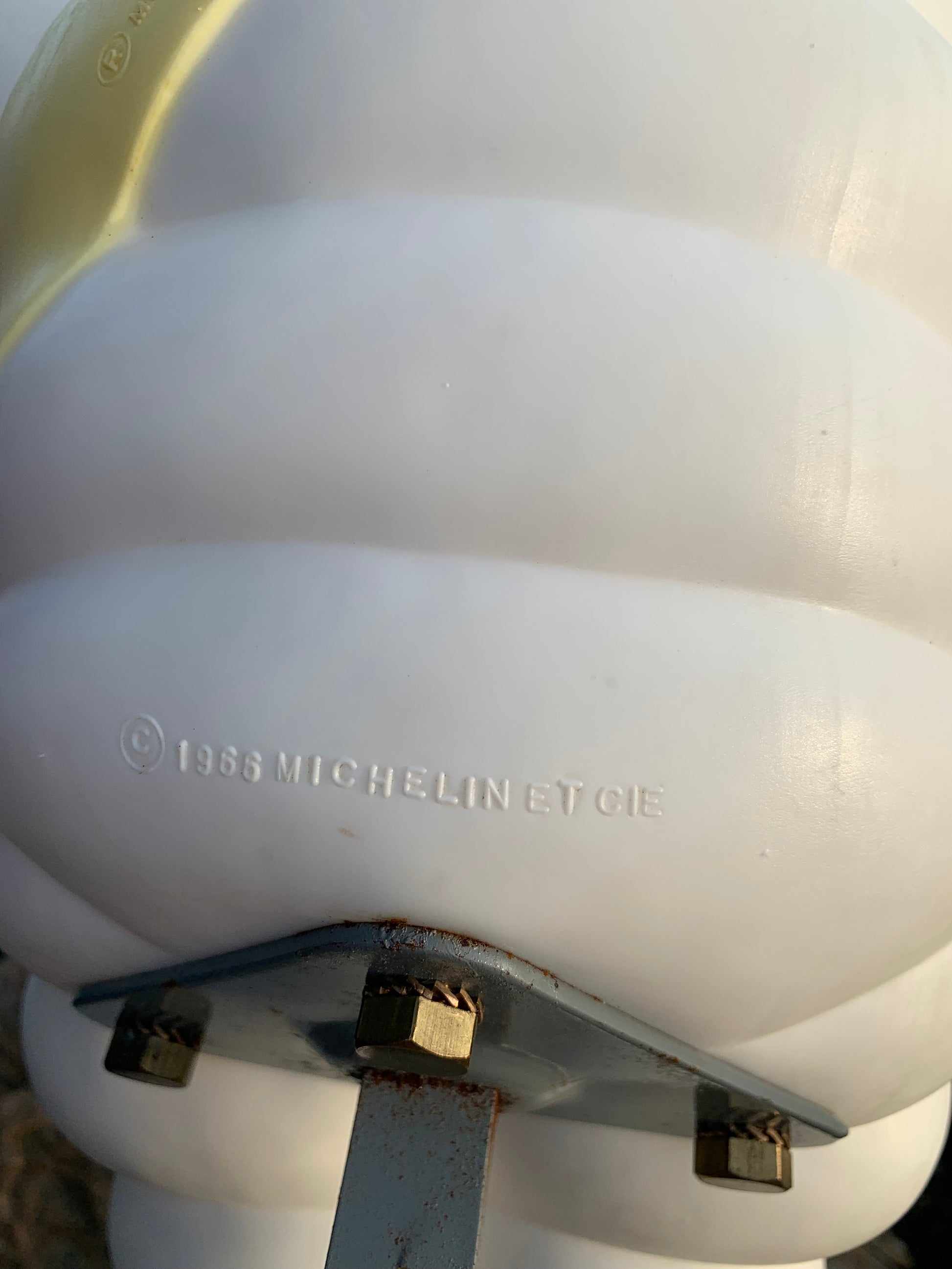 Flot udgave af den velkendte Michelin mand. Standen er god, når alderen tages i betragtning. Dog er der en smule rust på beslag samt lidt aldersrelaterede brugsspor på selve figuren.