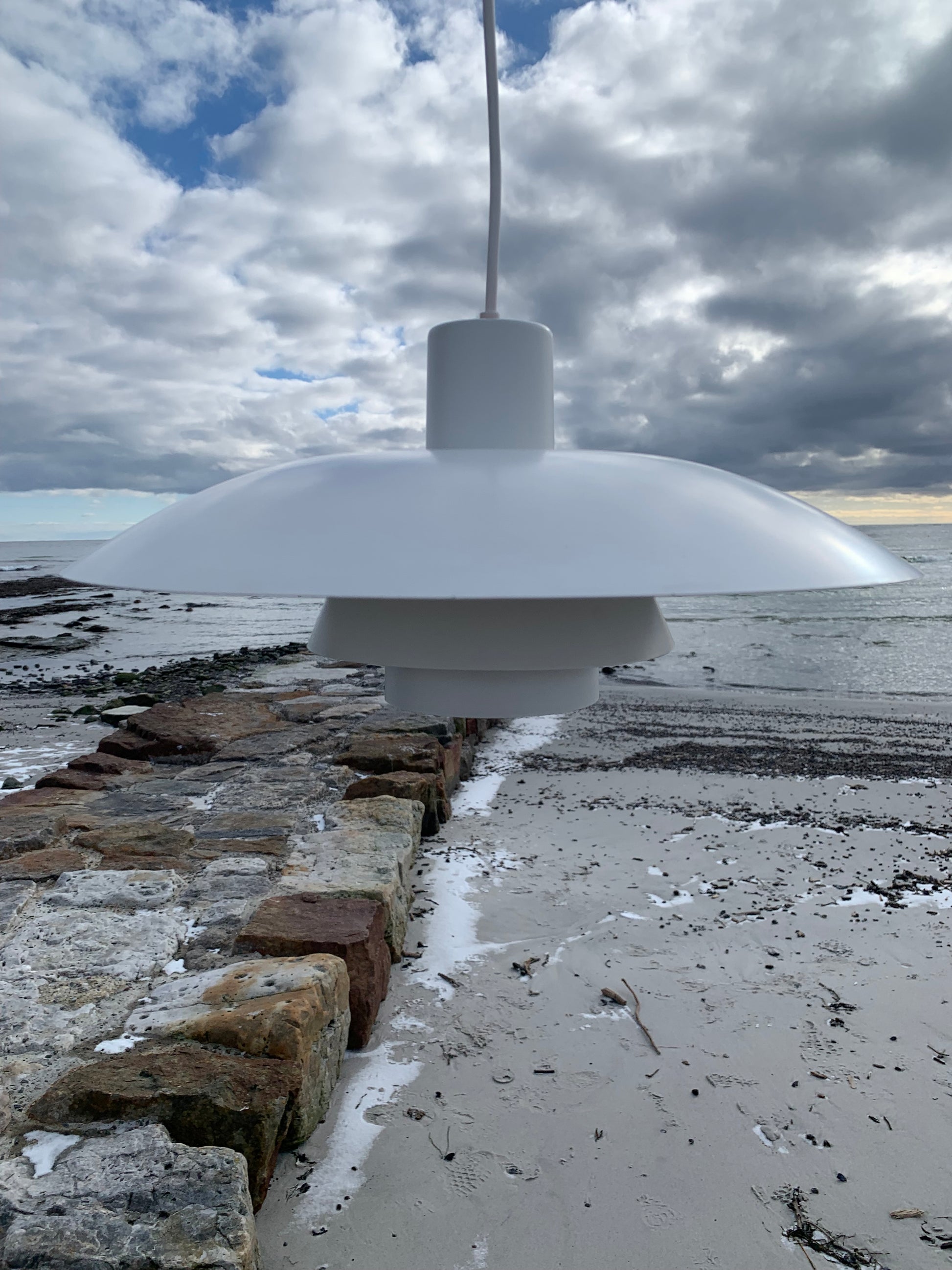 Historie: PH-lampe, belysningsarmatur tegnet af arkitekten og revyforfatteren Poul Henningsen. PH formulerede i begyndelsen af 1920'erne manglerne ved datidens belysningsarmaturer og udviklede sin belysningsfilosofi, der siden har dannet skole for dansk lyskultur.