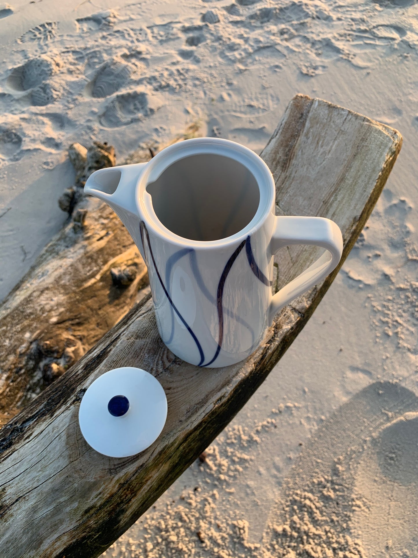 Fin gammel Harleking porcelænskande fra Lyngby. Kanden er i rigtig god stand.