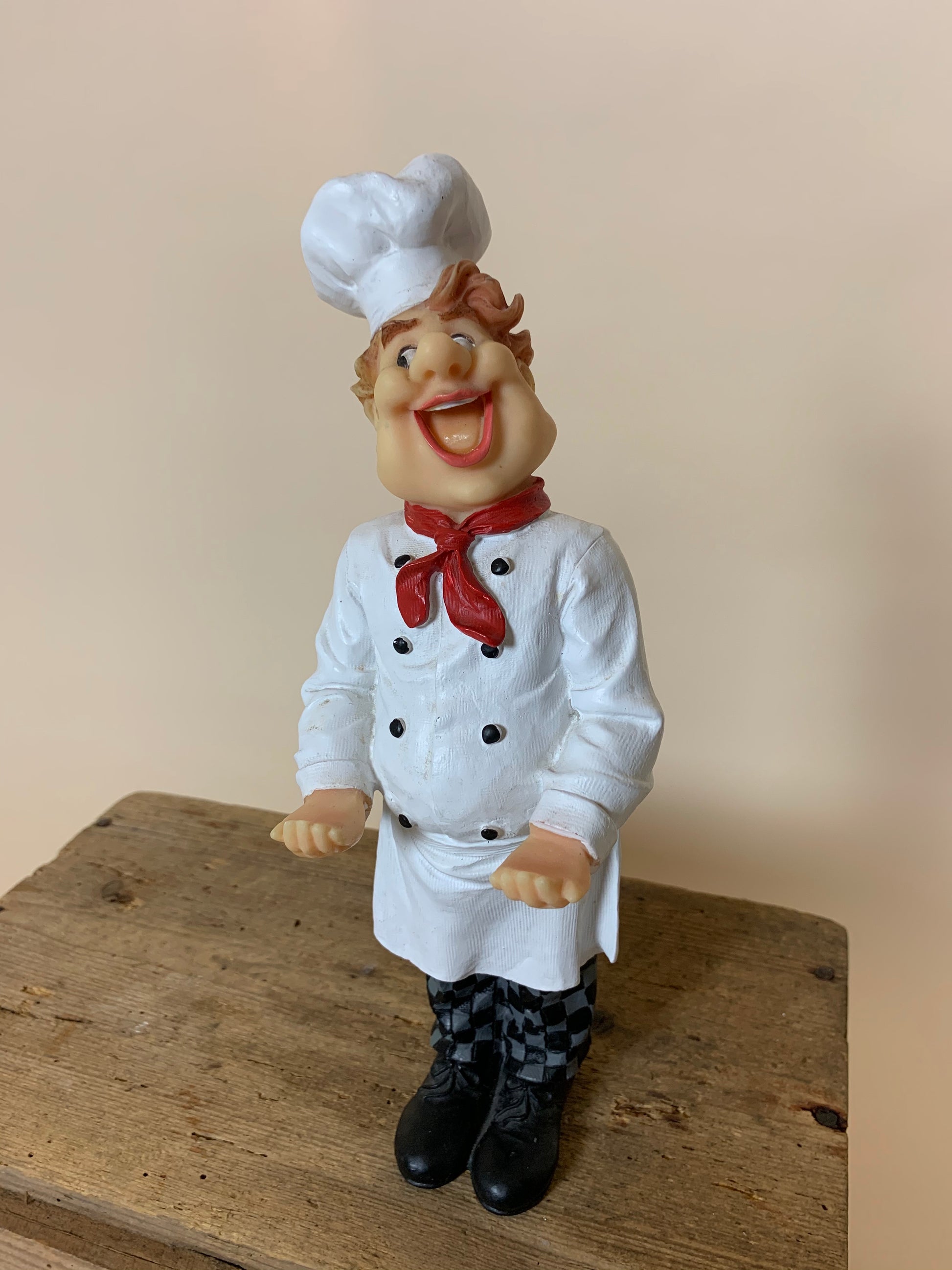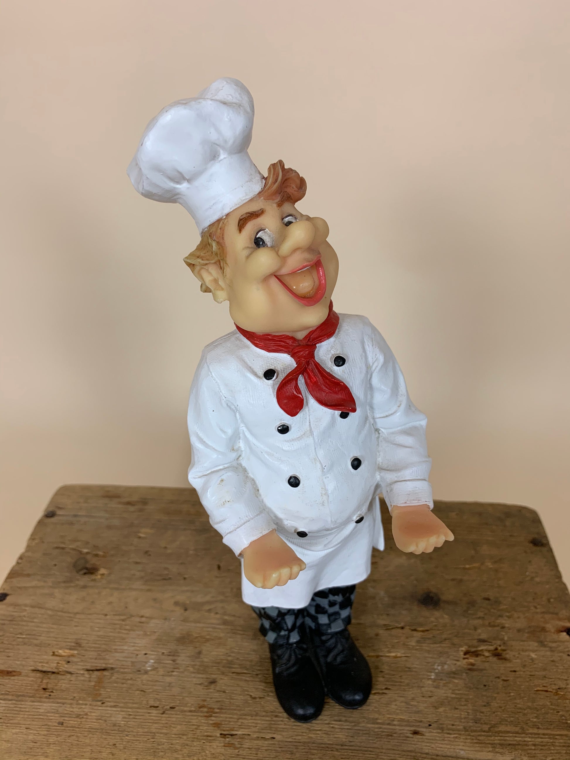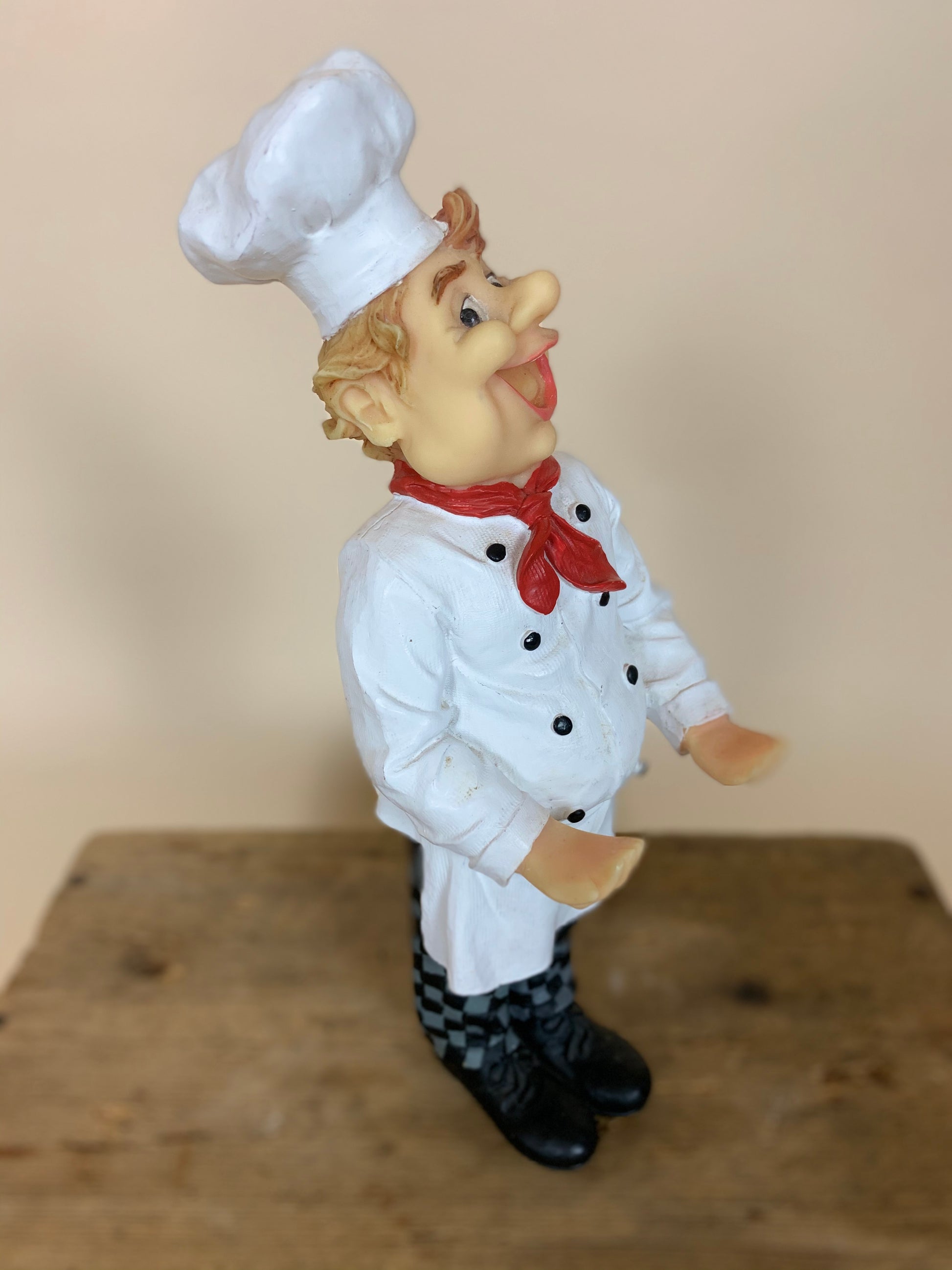 Sjov og dekorativ kok. Han ser glad ud og vil være en fin gave idé til en nyuddannet kok.