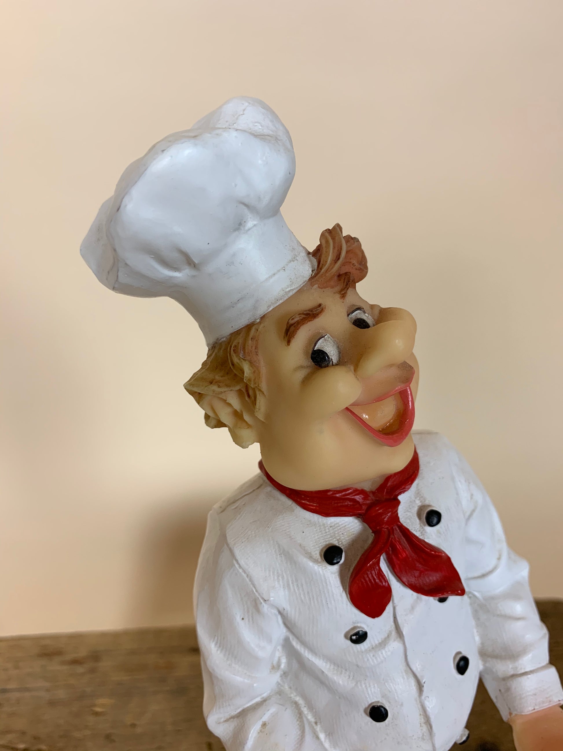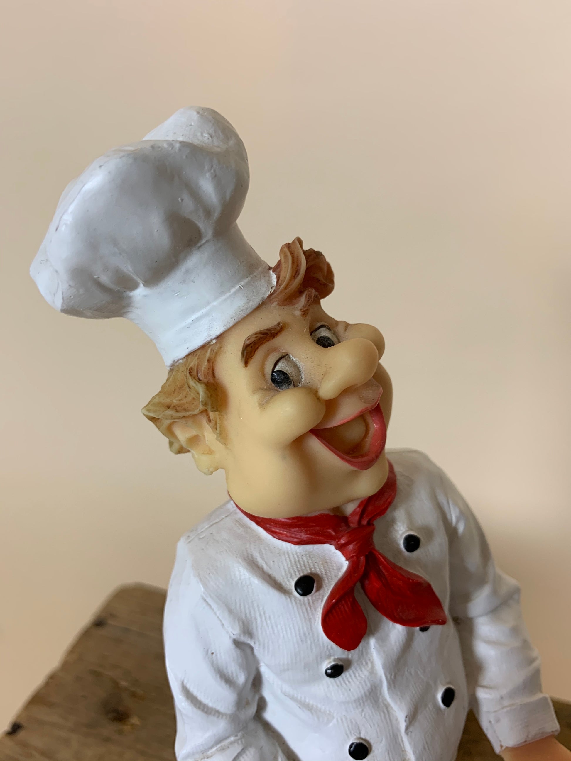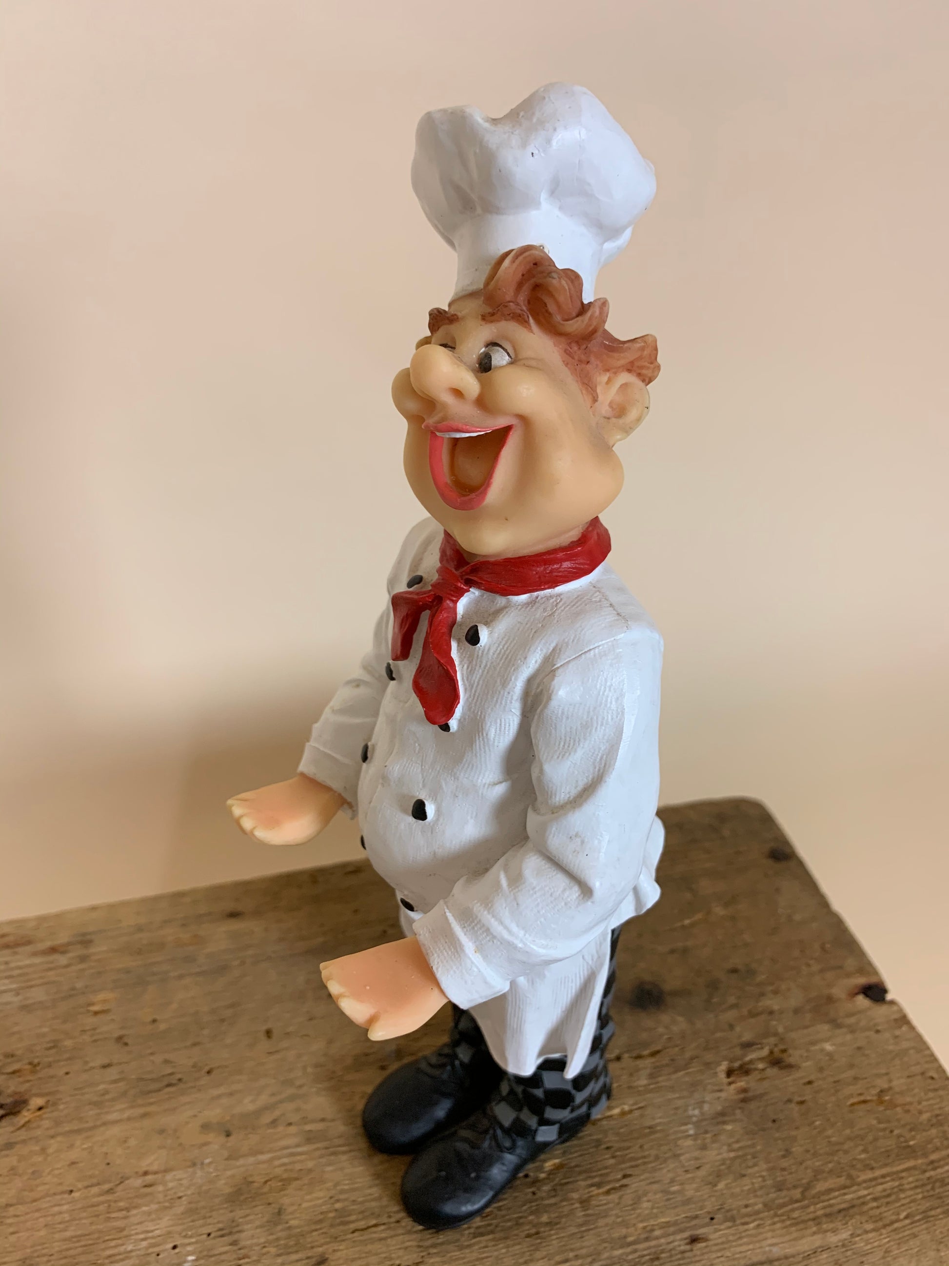 Sjov og dekorativ kok. Han ser glad ud og vil være en fin gave idé til en nyuddannet kok.