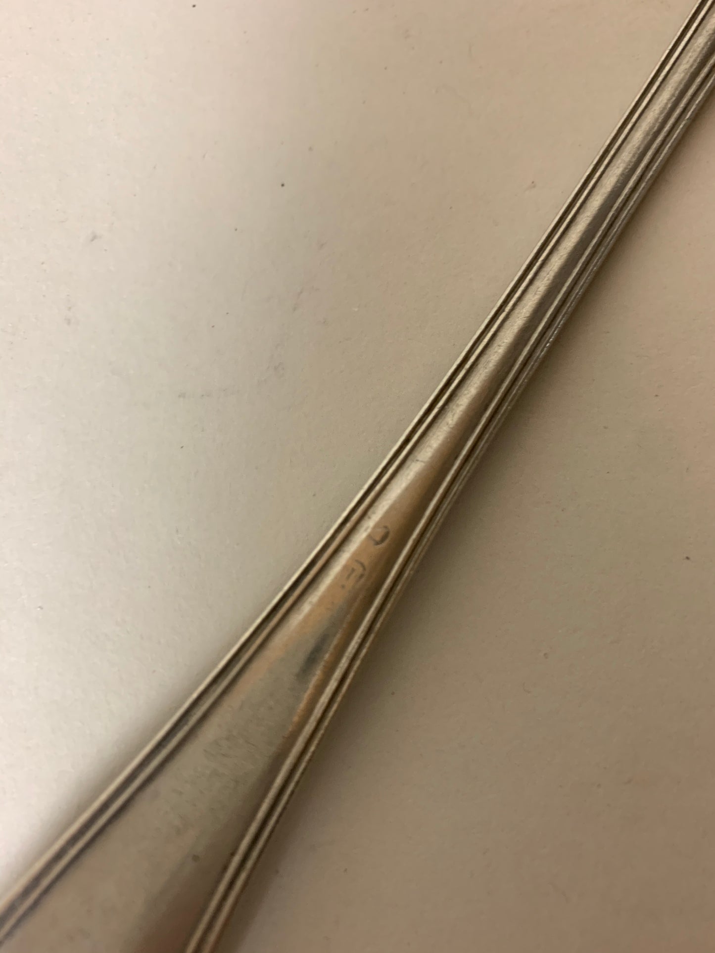 Stor og fin riflet gammel ske med de skønneste brugsspor.
