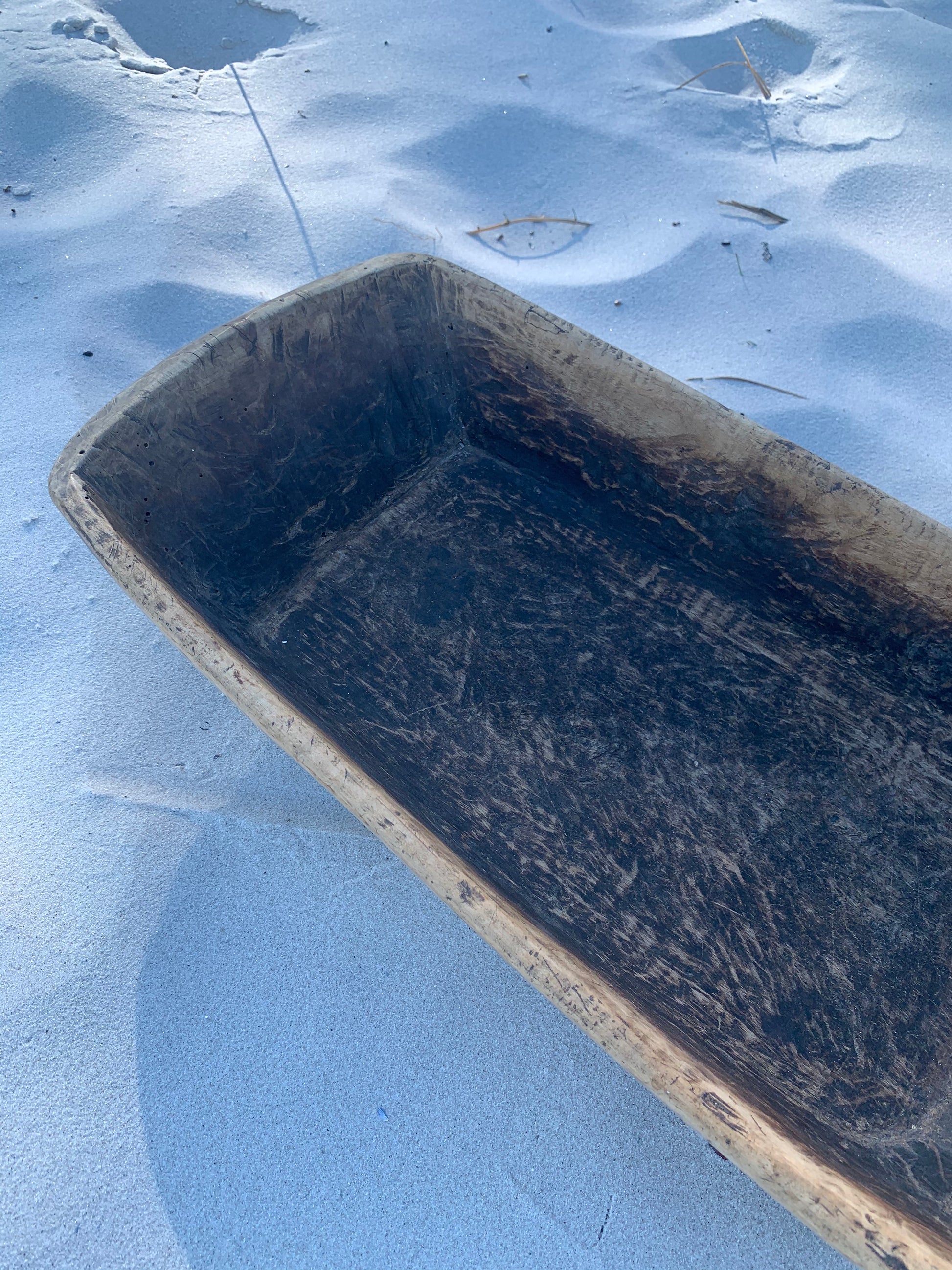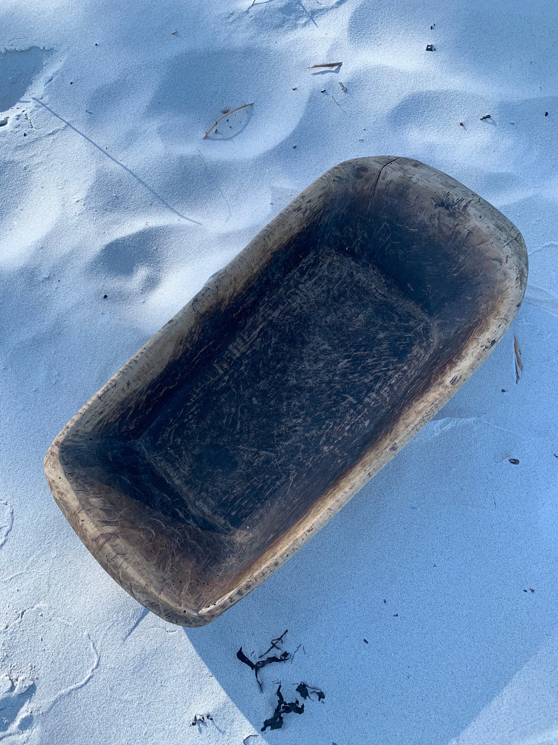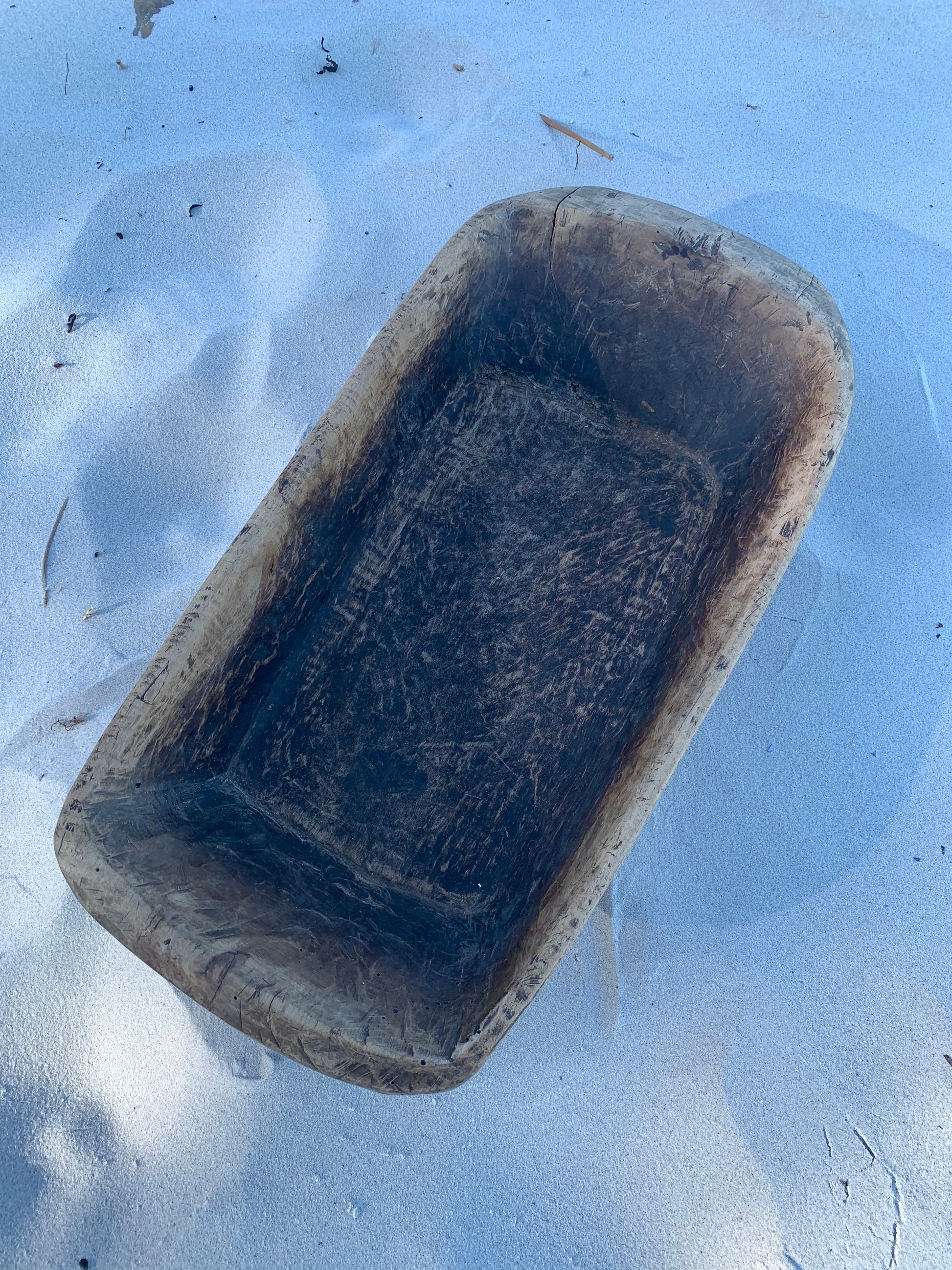 Skønt gammelt træfad. Fadet - der fremstår med masser af lækker patina - er asymmetrisk og har et skønt udtryk.