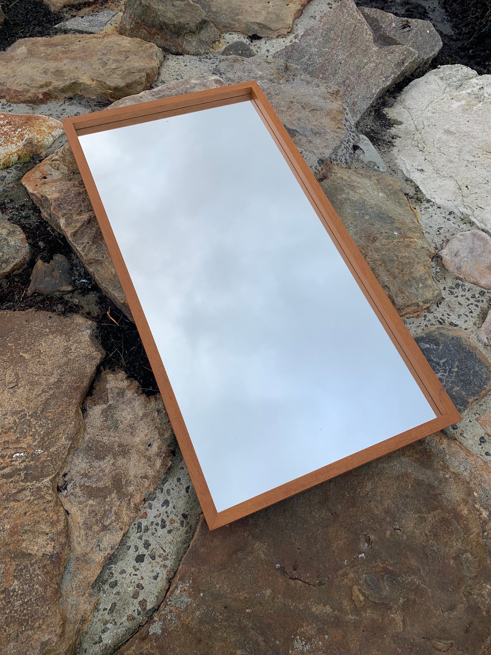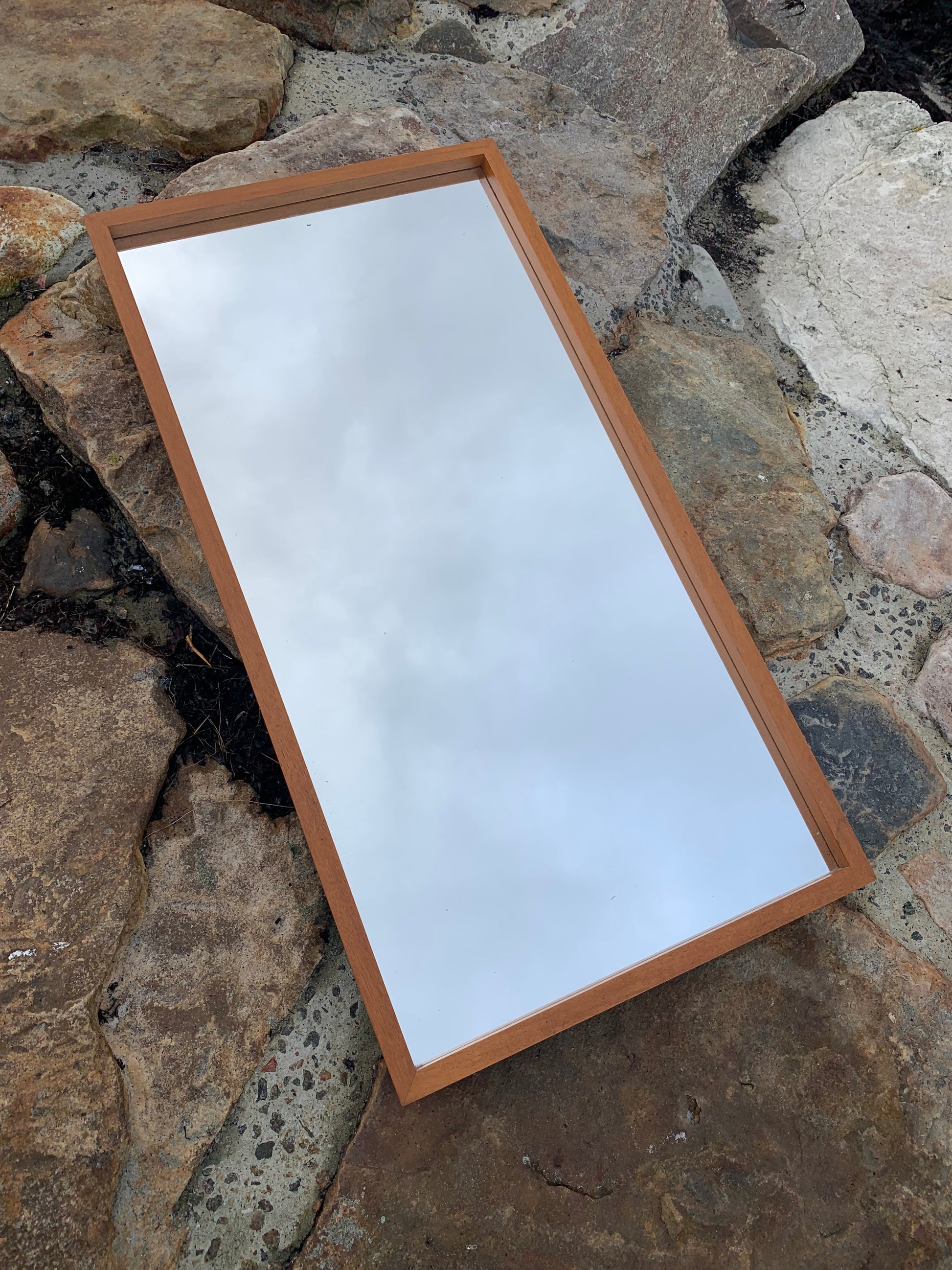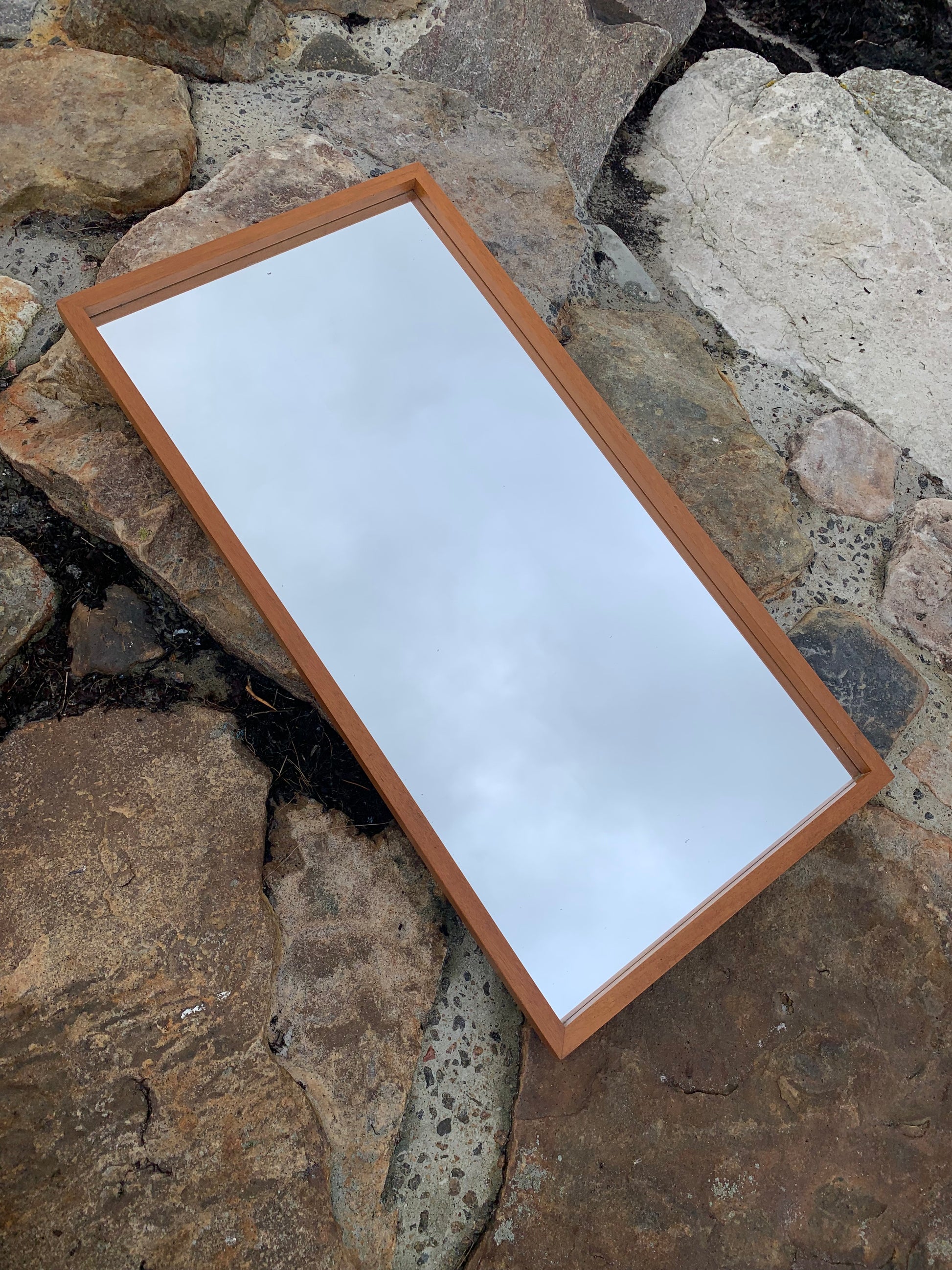 Fint gammelt spejl med træramme. Spejlet har en smule aldersrelaterede brugsspor men er overordnet i en god vintagestand.