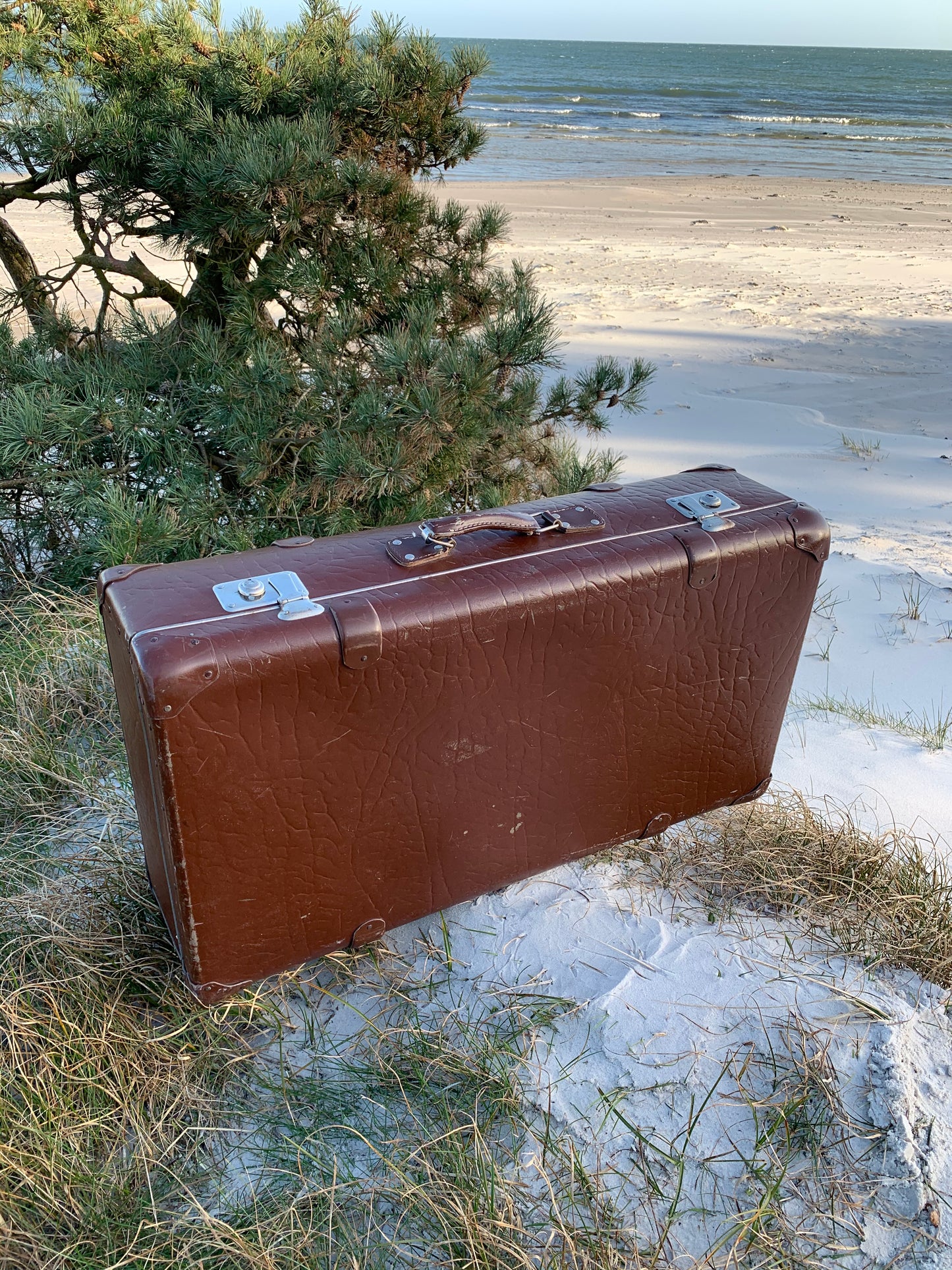 Historie: En kuffert er en rektangulær taske med runde hjørner lavet af hård eller blød plastik, vinyl, hårdt læder eller et lignende materiale, der holder formen. En kuffert har et håndtag til at bære den i, og bliver hovedsageligt brugt til at transportere tøj og andre ejendele ved rejser.