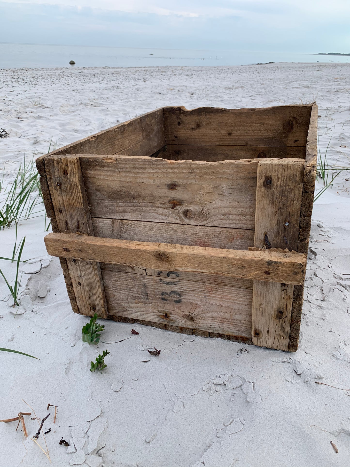 Denne trækasse er rå og har masser af skøn patina. Tidens tand har bidt i den på en meget charmerende måde.