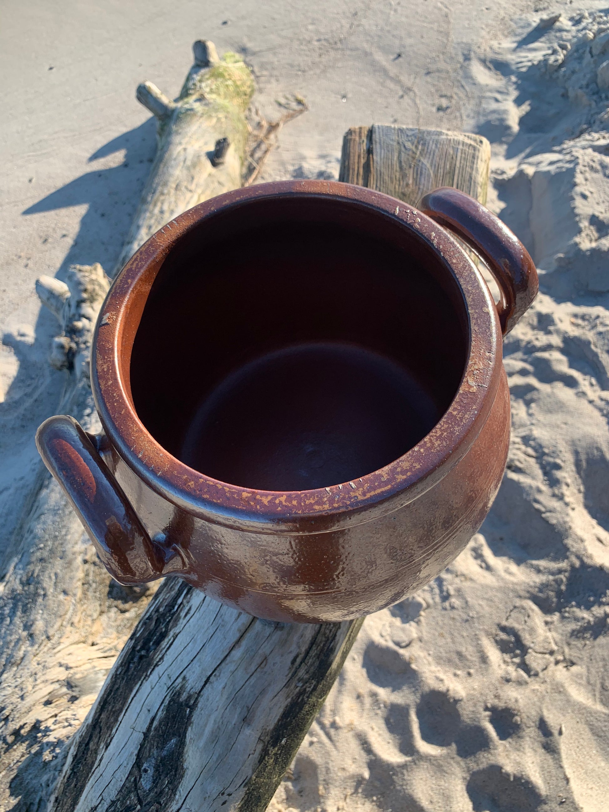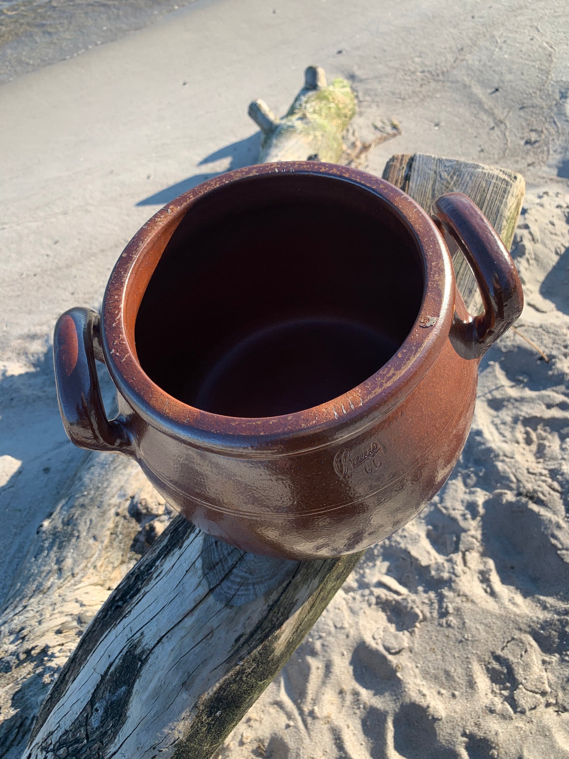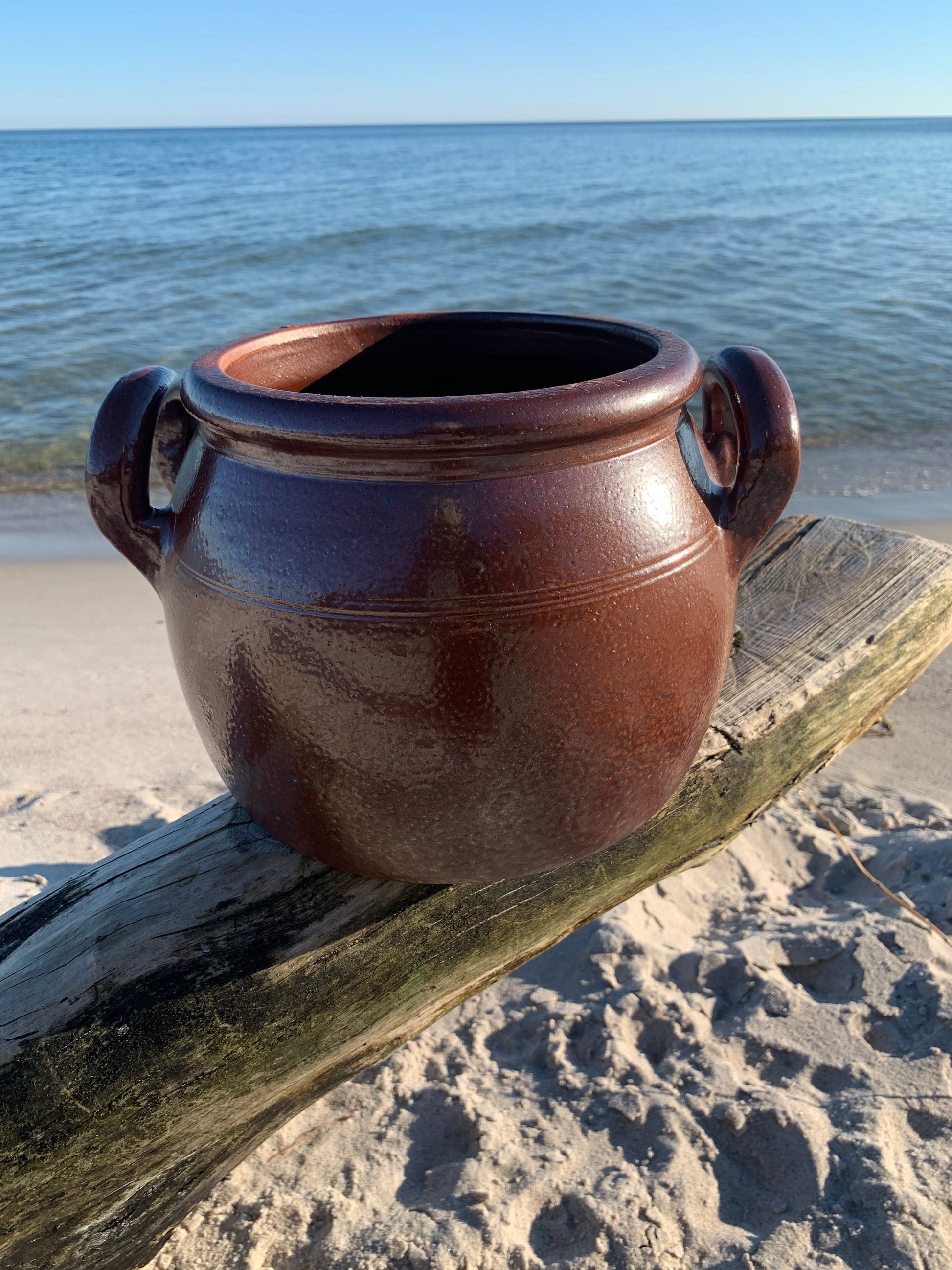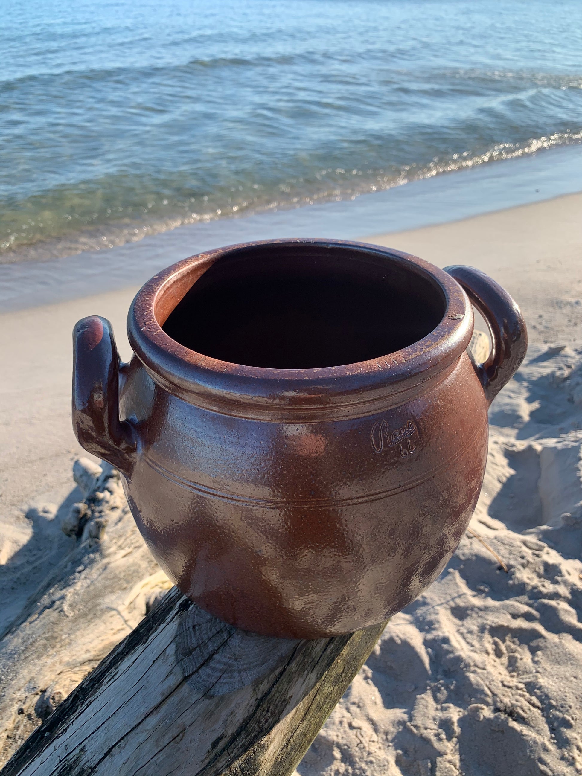 Anvendelig syltekrukke der kan anvendes til en plante, til køkkenredskaber eller hvad du ellers måtte finde på. Krukken er original, charmerende og har patina.