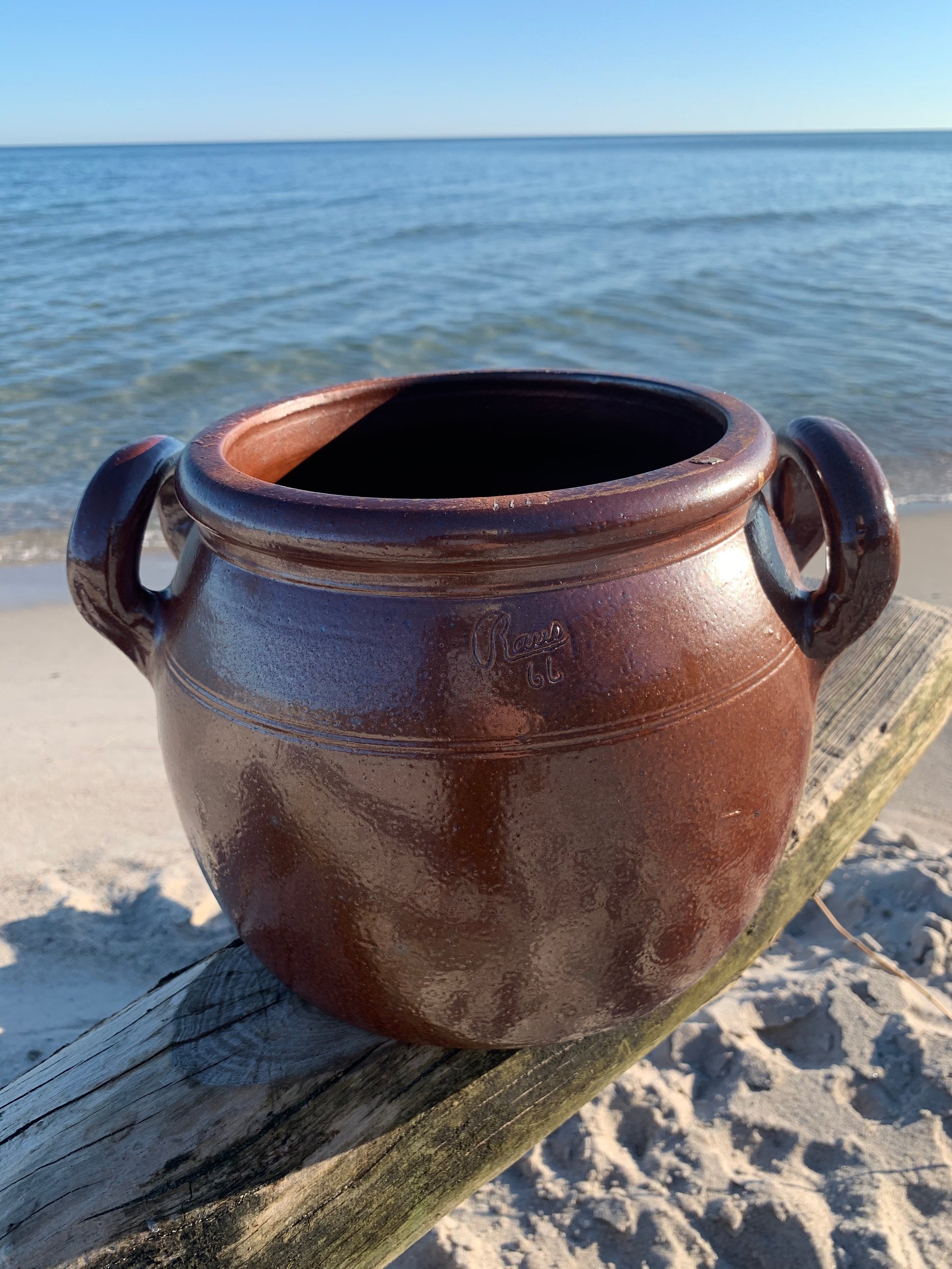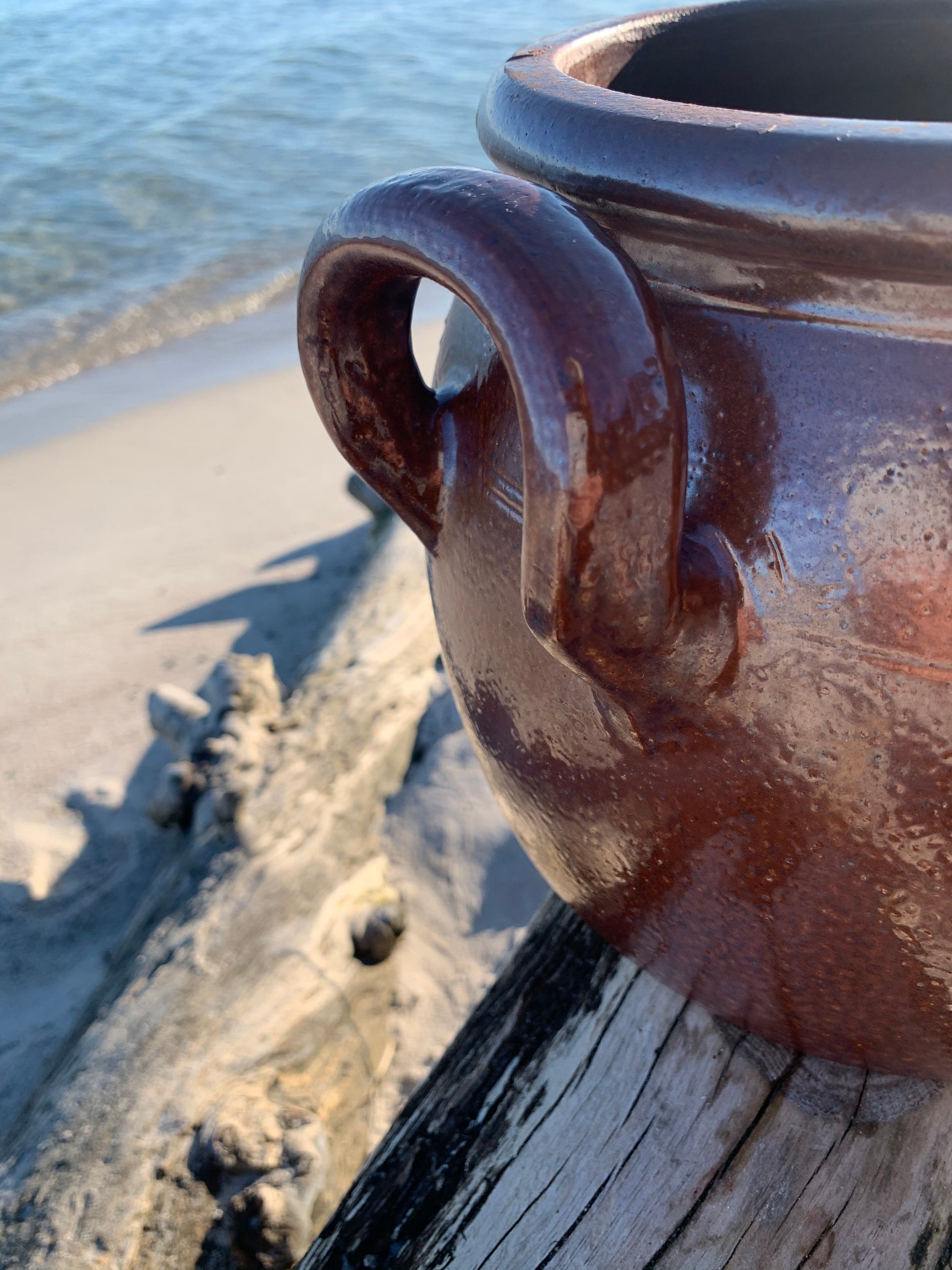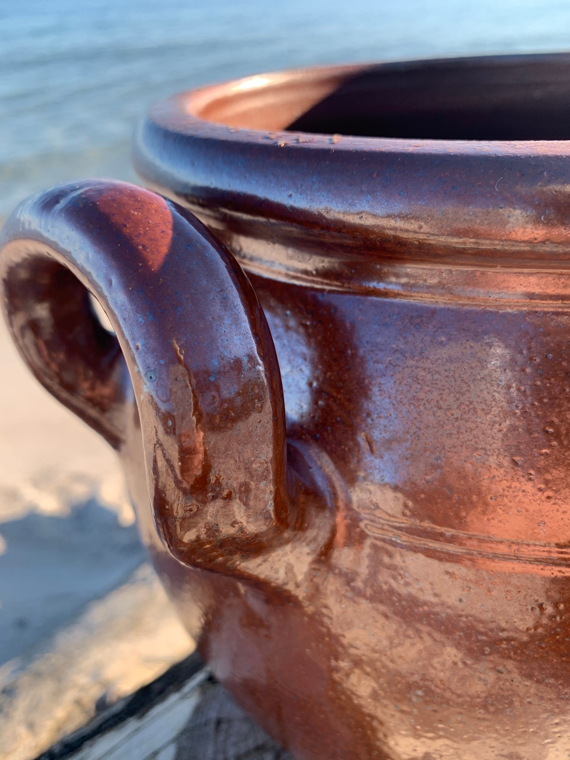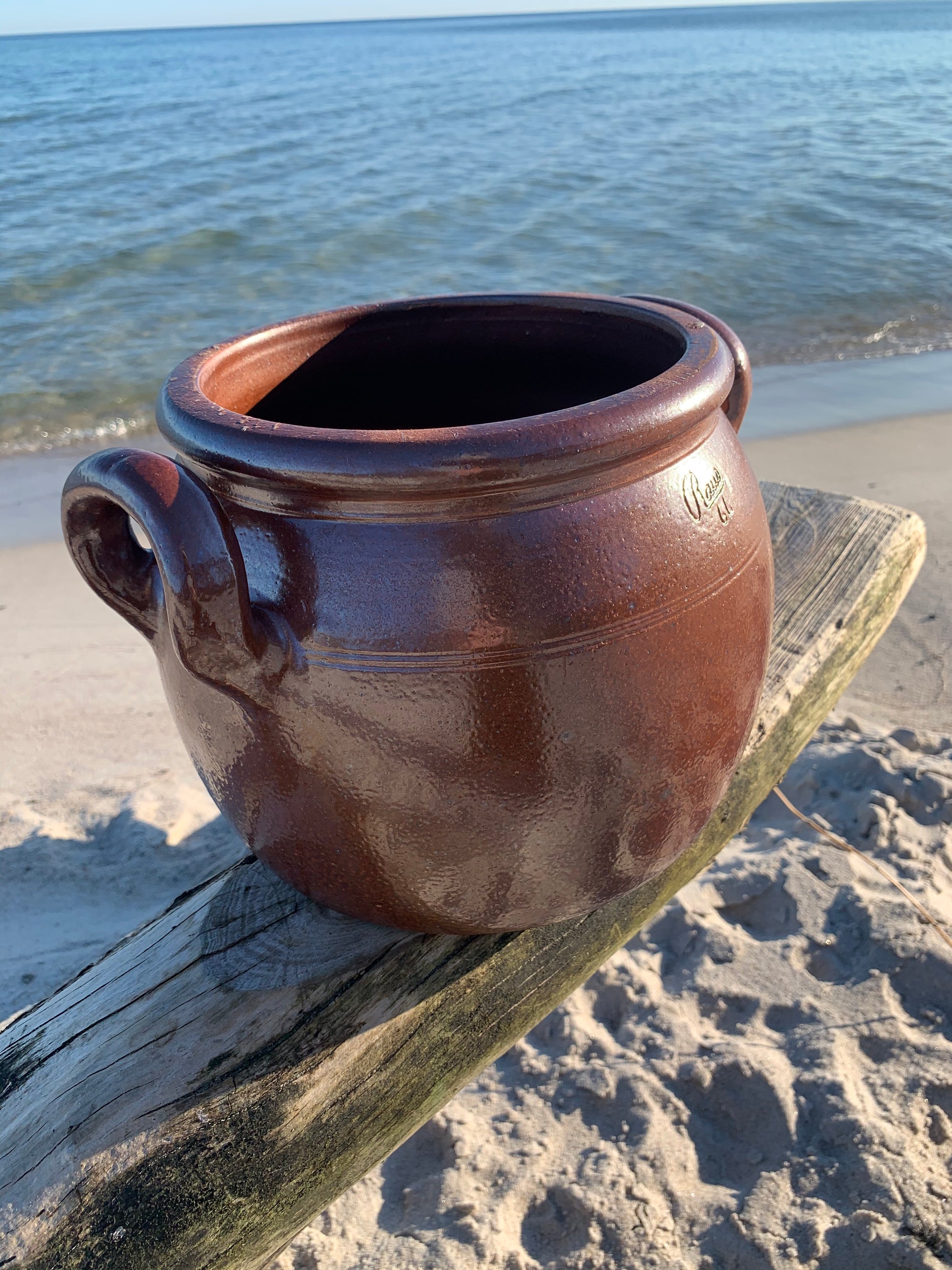 Anvendelig syltekrukke der kan anvendes til en plante, til køkkenredskaber eller hvad du ellers måtte finde på. Krukken er original, charmerende og har patina.