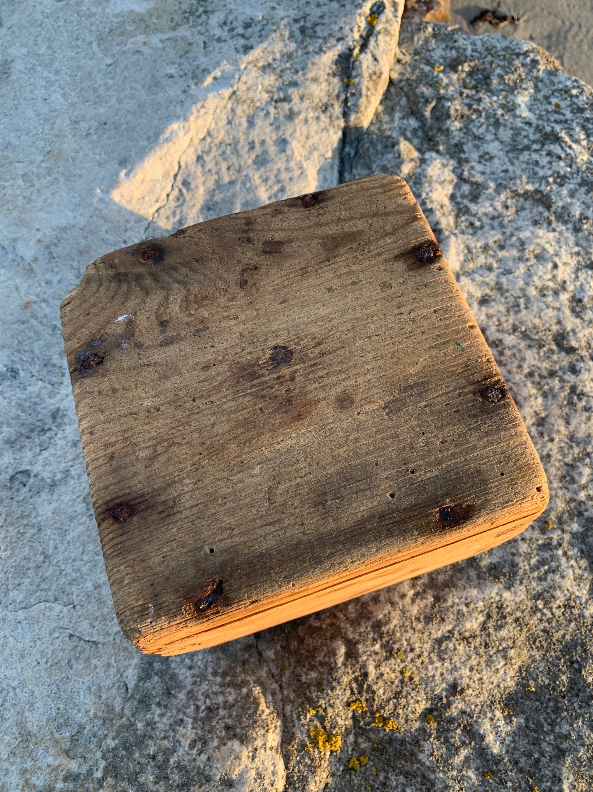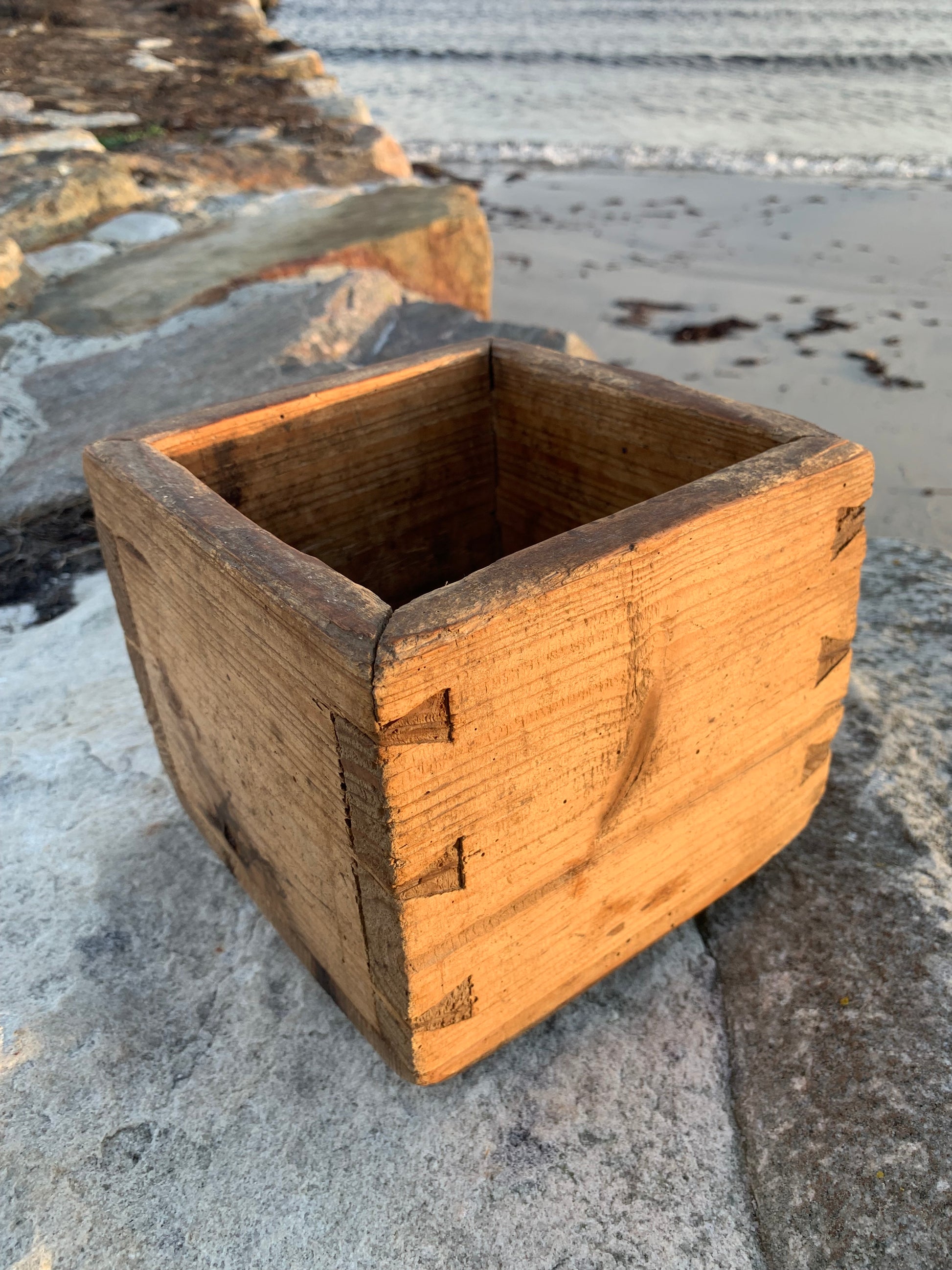Gammel og meget charmerende trækasse. Kassen har nogle fine håndværksmæssige detaljer, (er tappet sammen i hjørnerne) derudover har den et udtryk som det har taget mange år at opnå.
