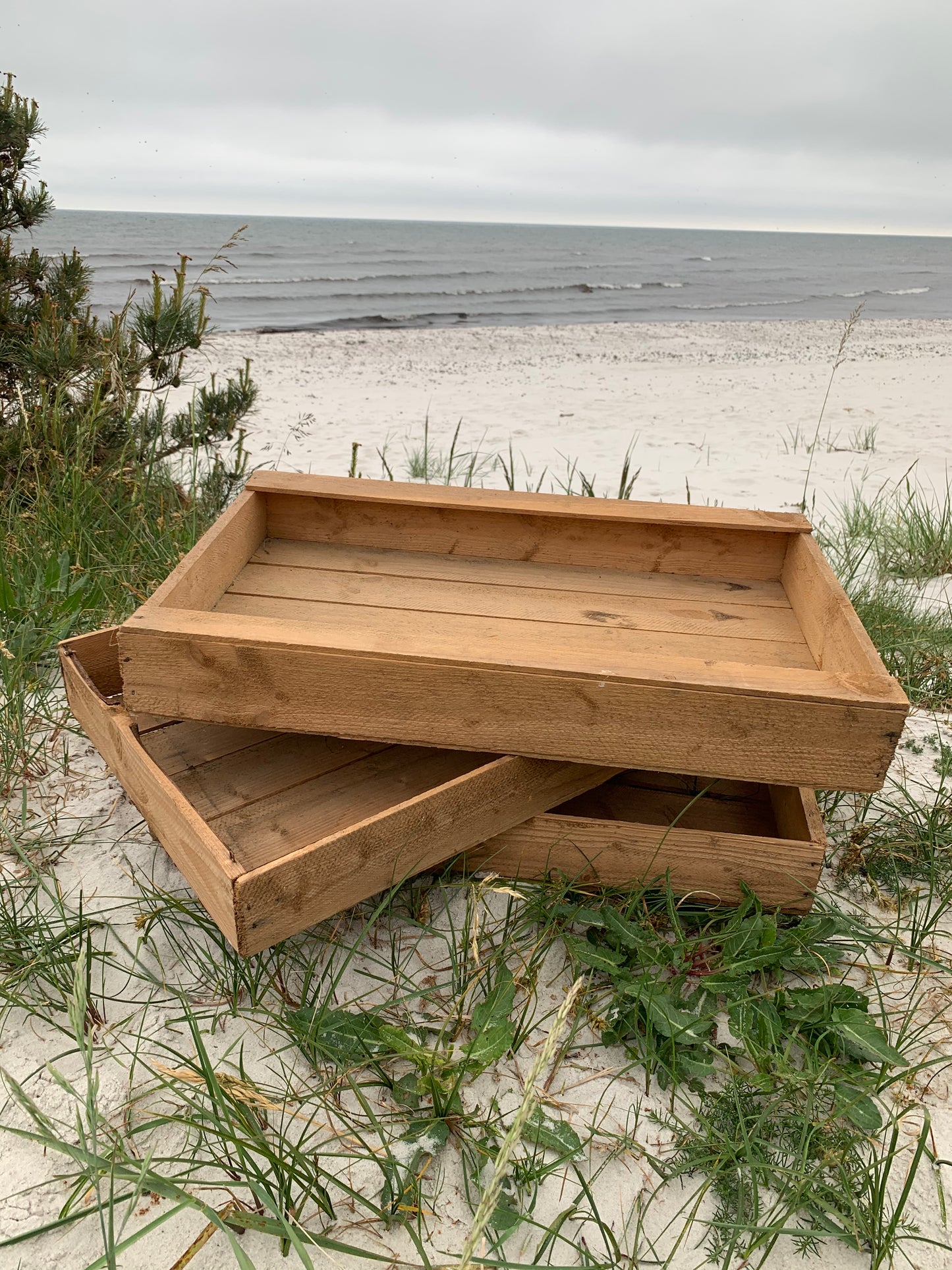 Dekorativ trækasse. Kassen er ikke så kraftig, men er meget anvendelig som dekoration. Eksempelvis kan du samle nogle potter i den udendørs....