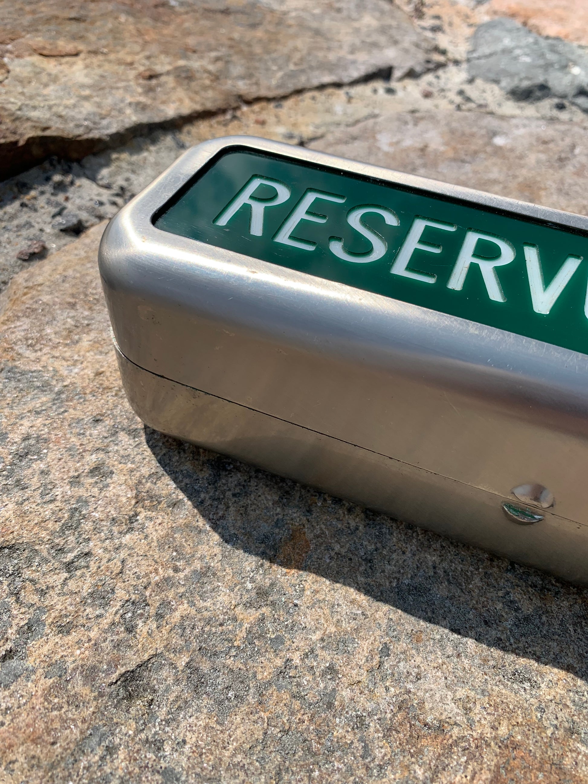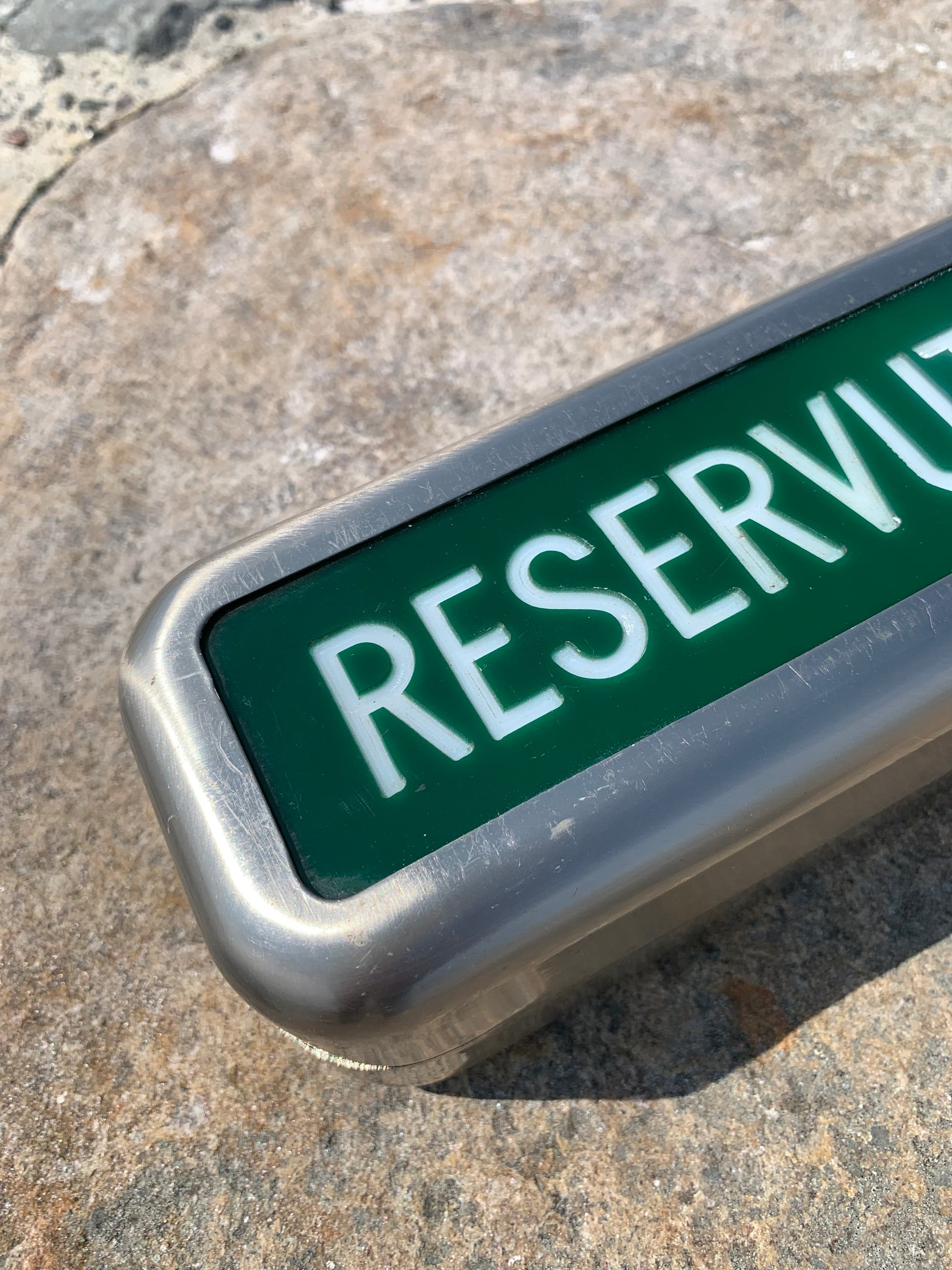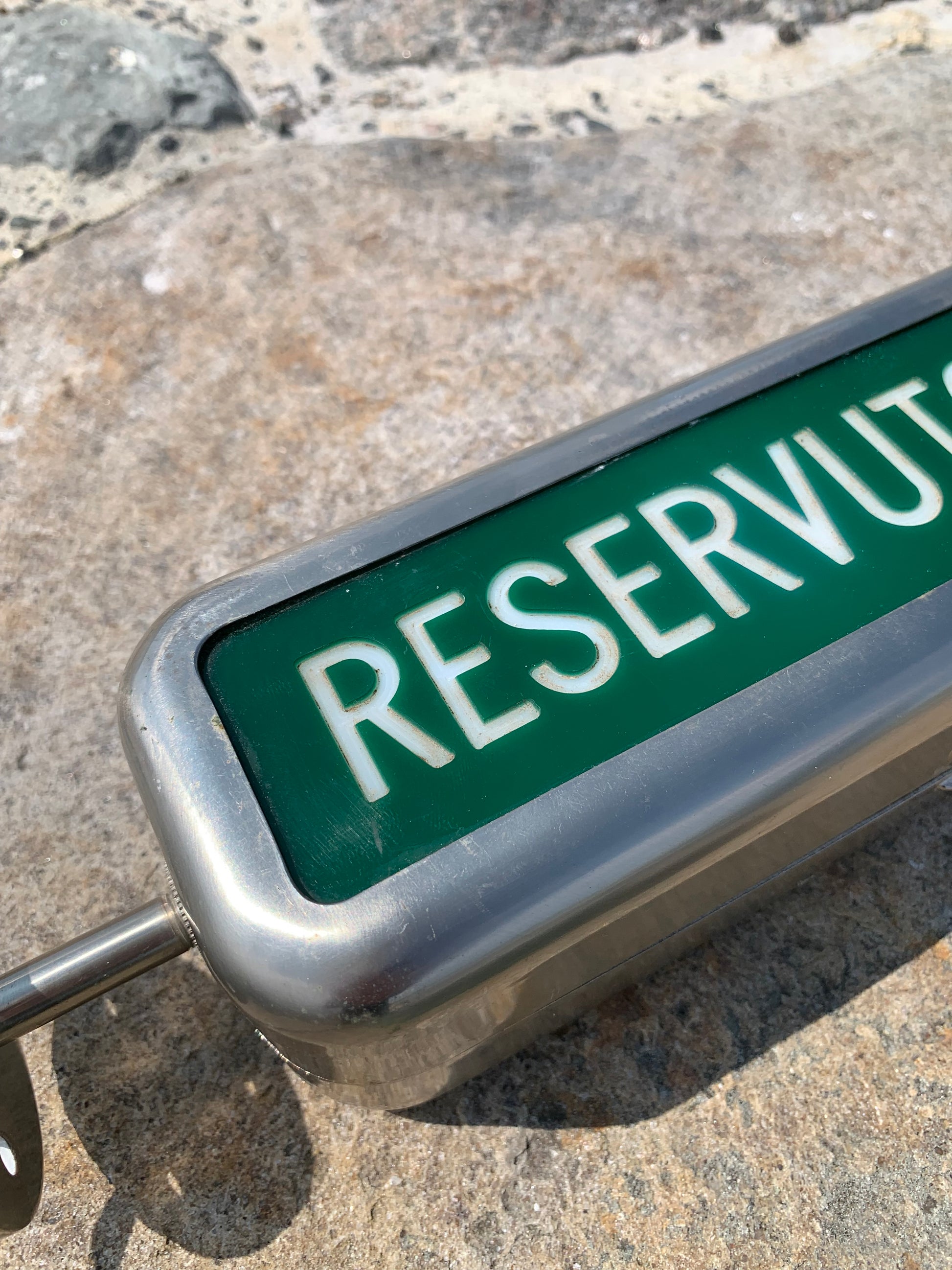 Fin og sjældent gammelt lysskilt med en sjov og anderledes tekst. Skiltet er nykablet og fremstår med den slags brugsspor, som sådan et skilt nærmest bør have.