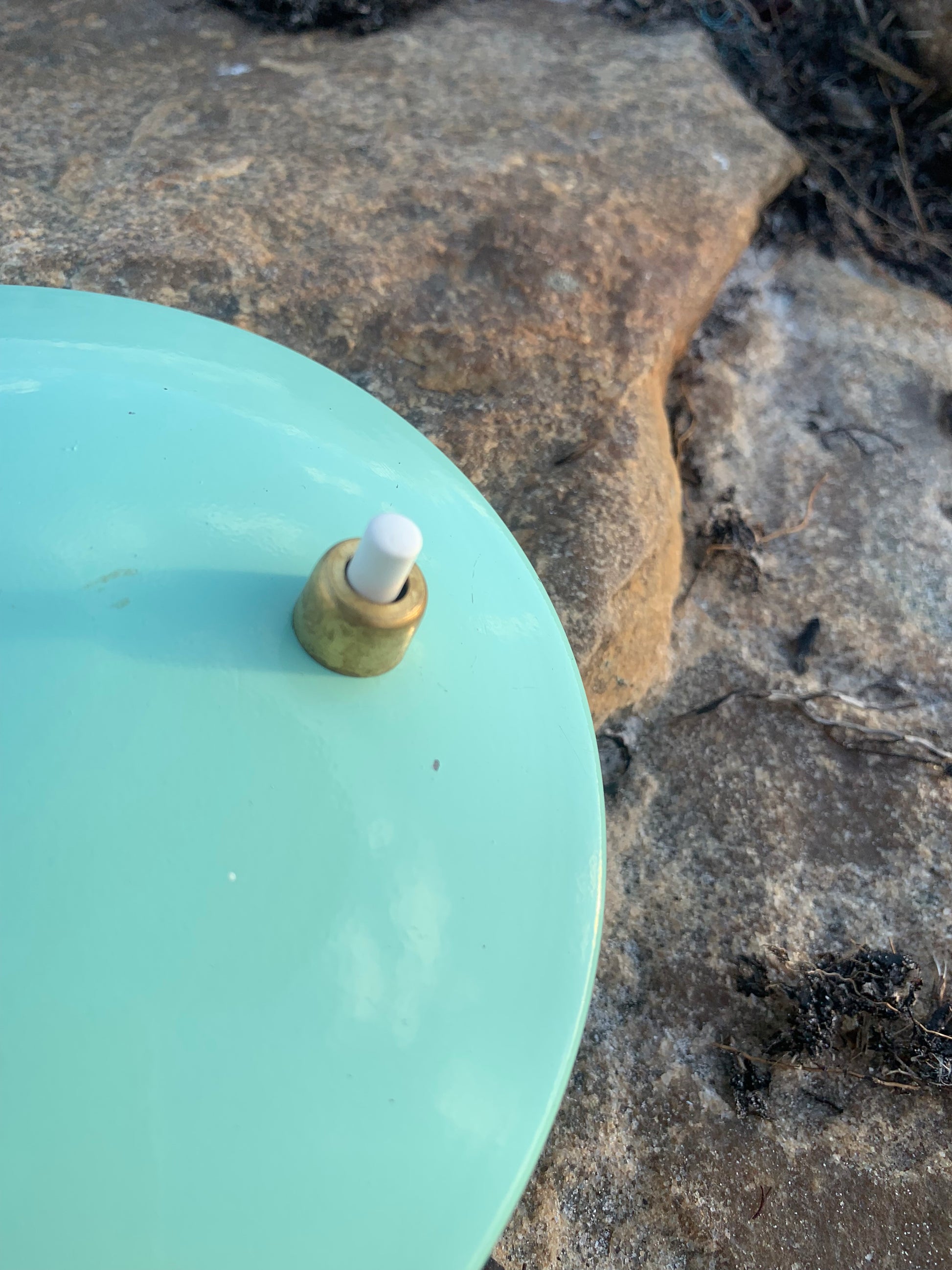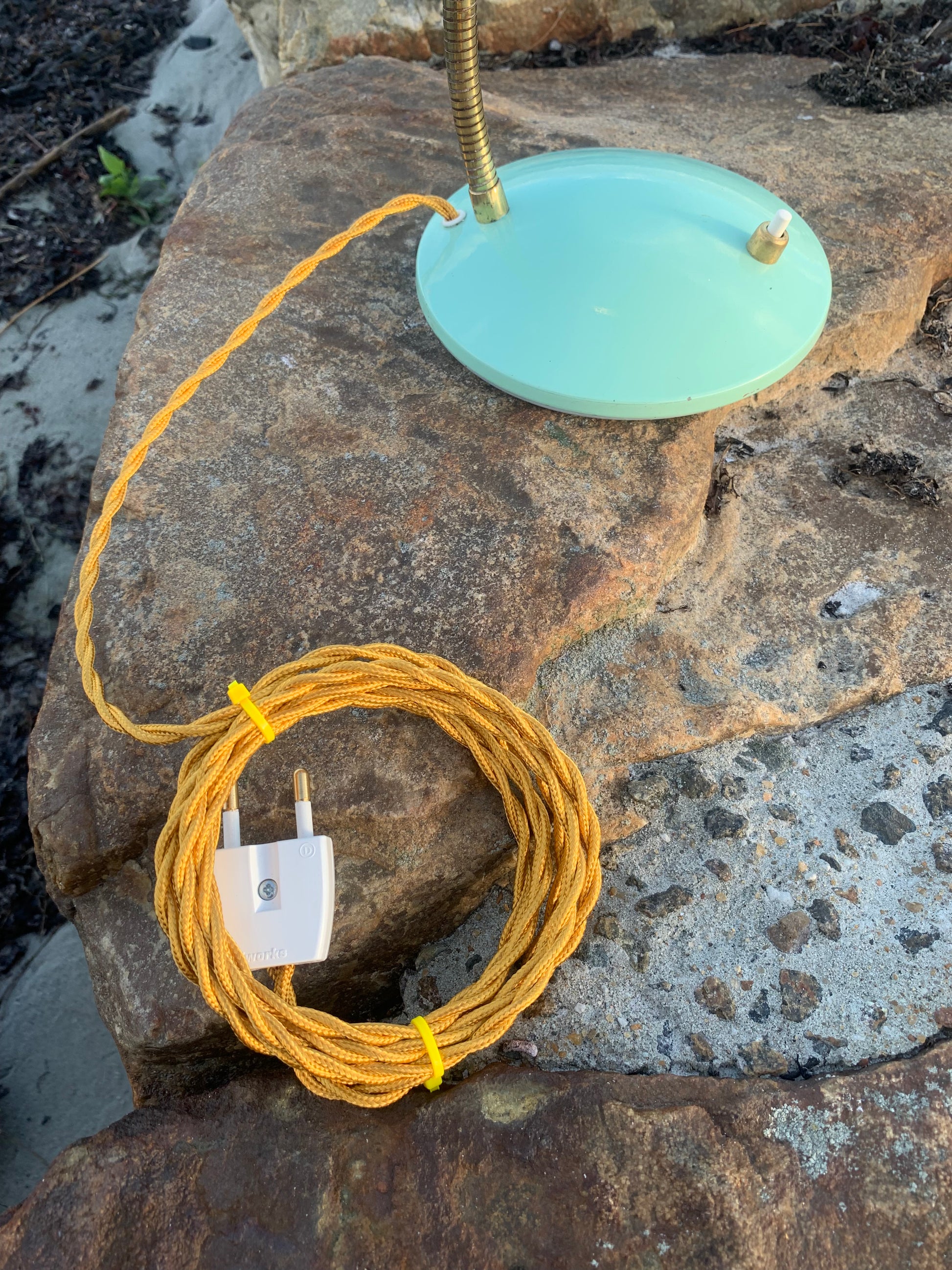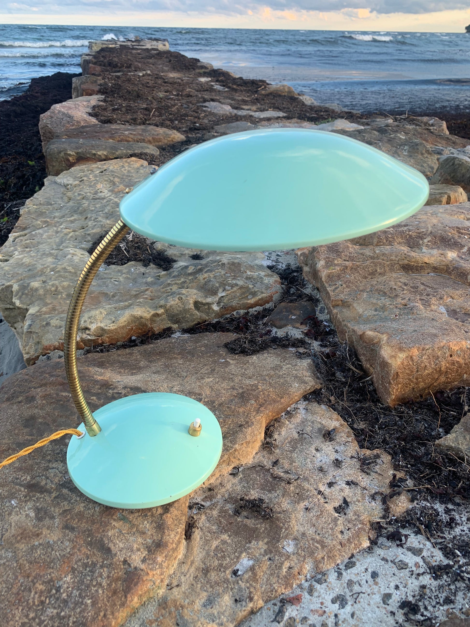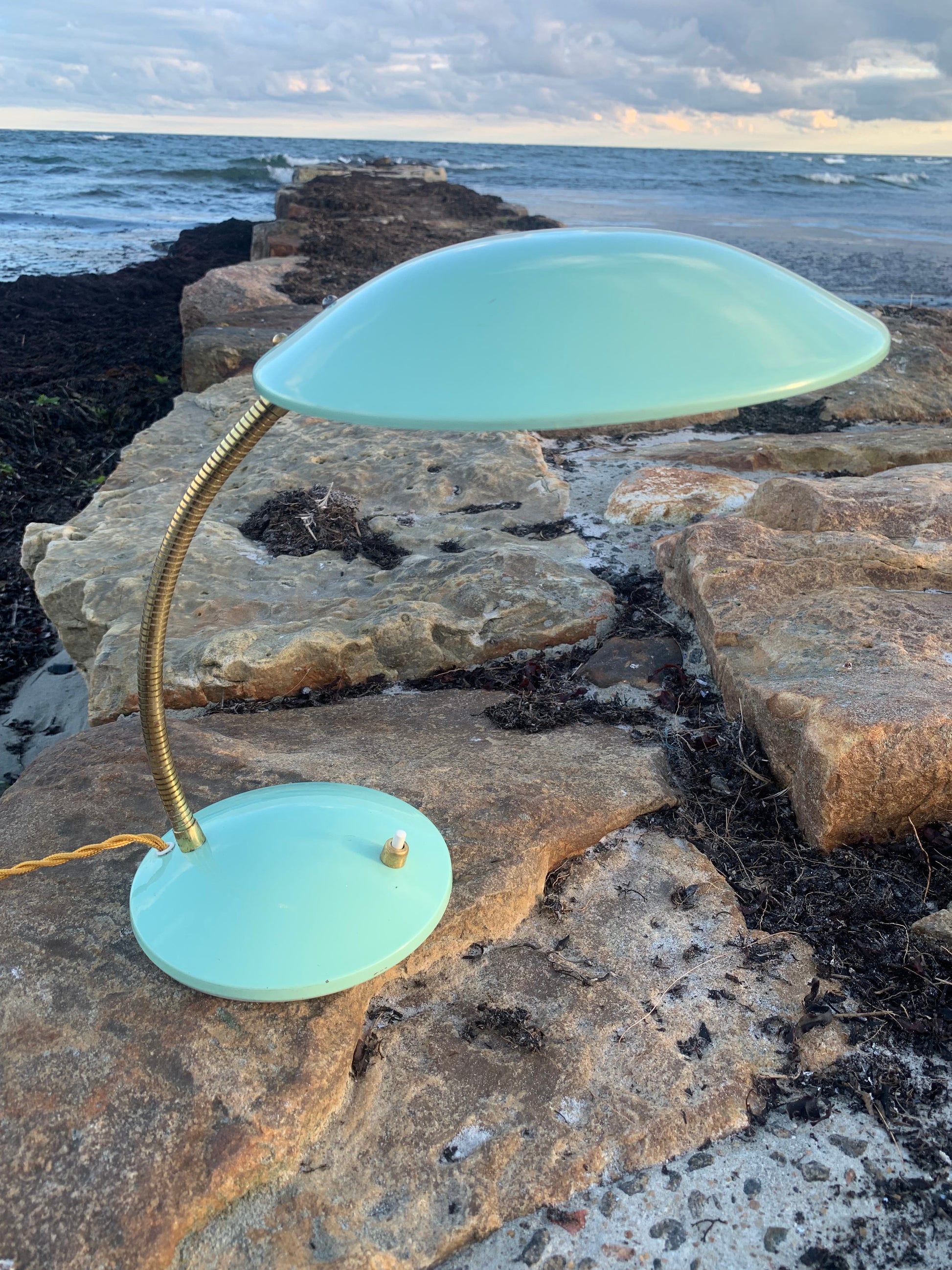 Fin gammel vintagelampe i en lækker mint farve. Lampen fremstår nykablet og med en smule aldersrelaterede brugsspor som disse lamper (efter vores smag) nærmest bør have.
